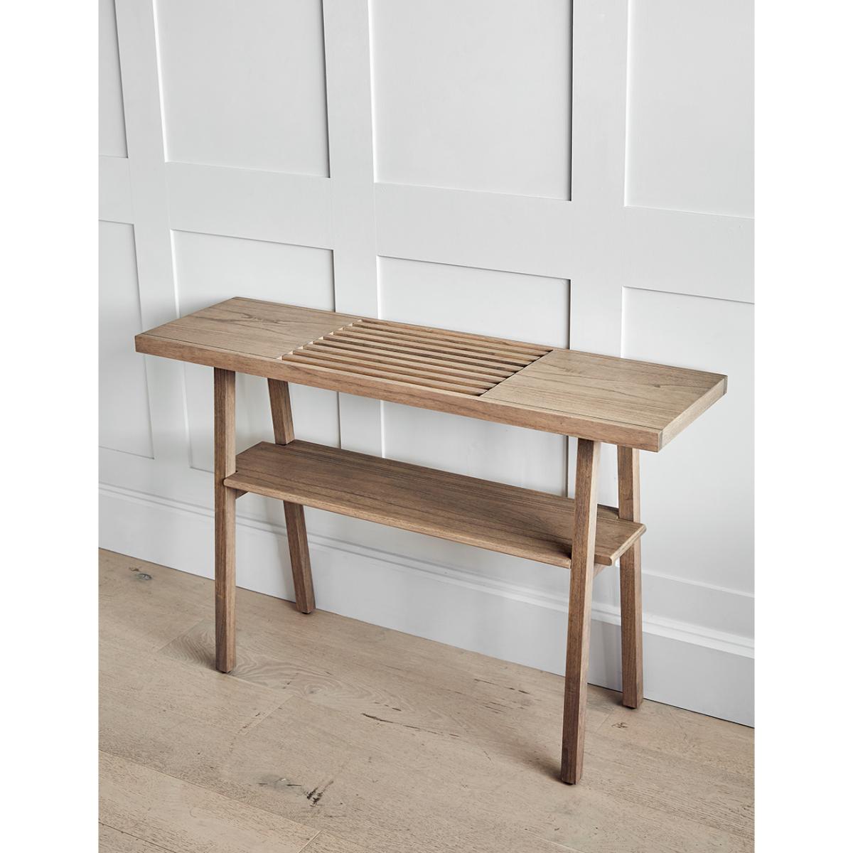 I love this piece because of its simple, versatile design that works well in a variety of interiors, from rustic to modern minimalism. The wood finish adds warmth, making it perfect for entryways, living rooms, or even bedrooms. Practical styling tips include keeping the surface clear for a clean look, perhaps adding a small statement lamp or a vase of fresh flowers for visual interest. Its manageable size makes it ideal for space-conscious settings, and it pairs just as well with vintage finds as with sleek, contemporary pieces. Overall, it’s a solid choice for bringing functional style and understated charm to your home.