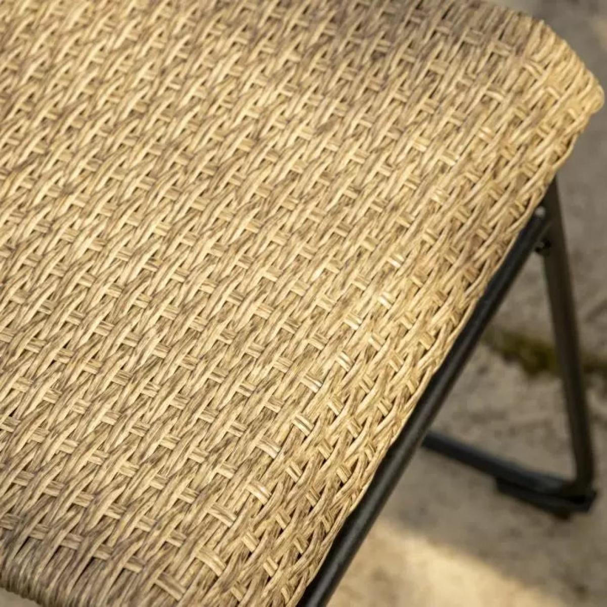 Set of 2 dining chairs designed to compliment a variety of outdoor dining tables. With a simple powder coated meatal frame and woven rattan seat and back these chairs will be a great addition to your al fresco dining experience.