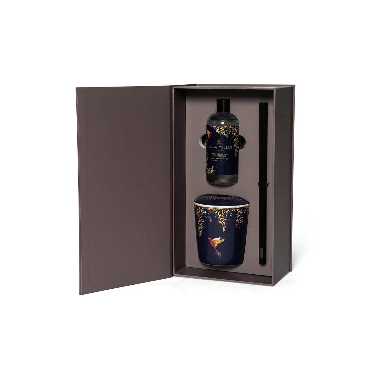Bring an elegant scent to your home with this diffuser from Sara Miller. It combines notes of orchid, lotus blossom and star anise with hints of bergamot, creamy tonka and musk for an oriental-inspired floral fragrance. The set includes alcohol-free reeds for a long-lasting scent and a decorative ceramic diffuser in a medium-sized shape.