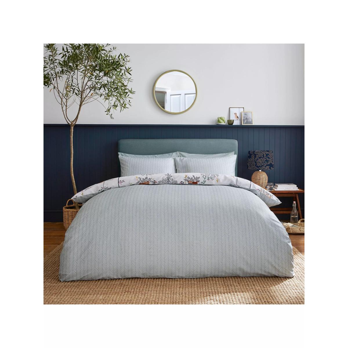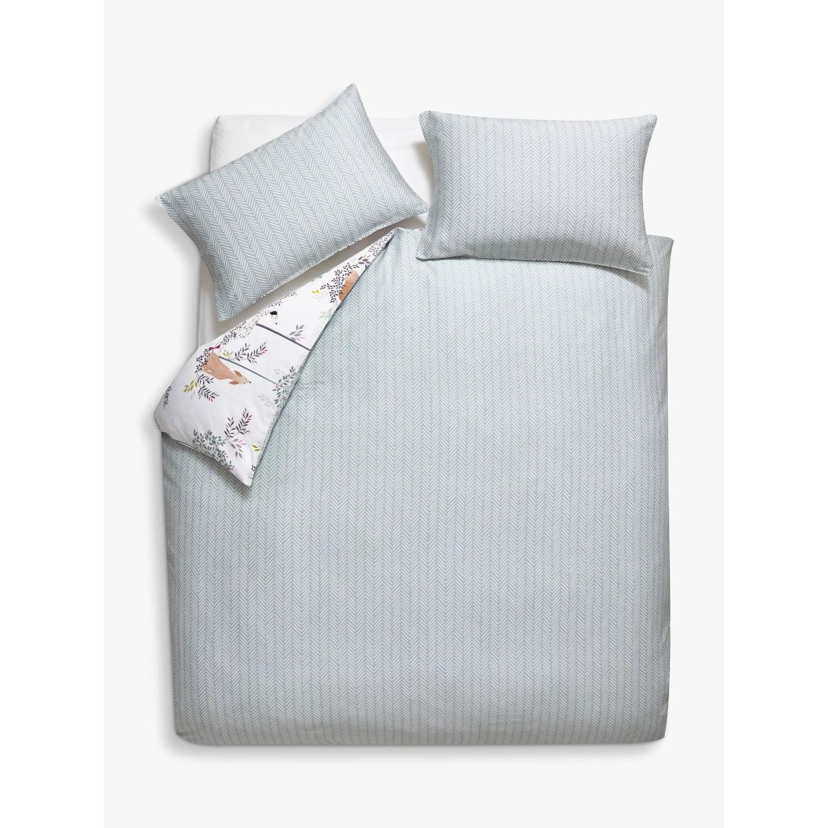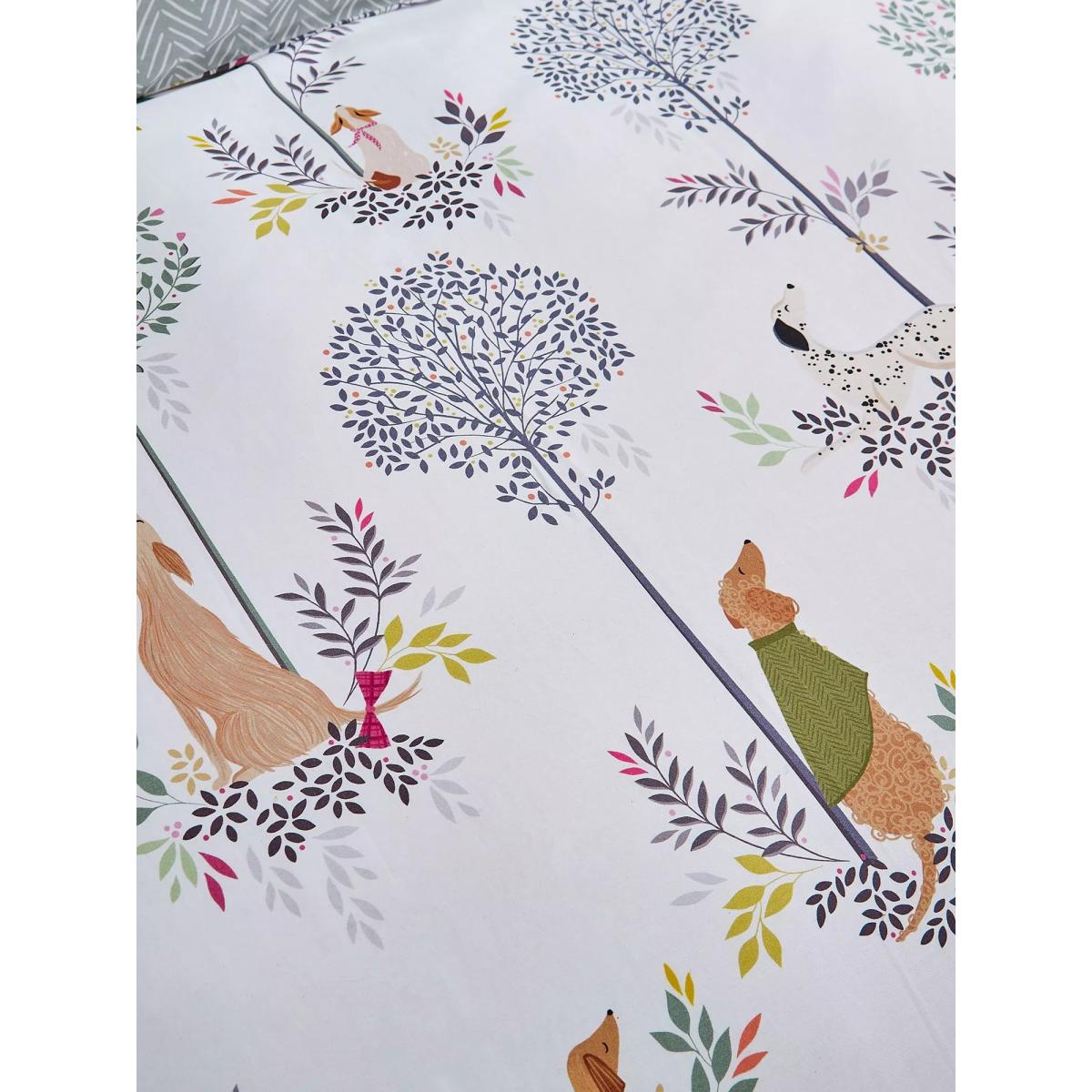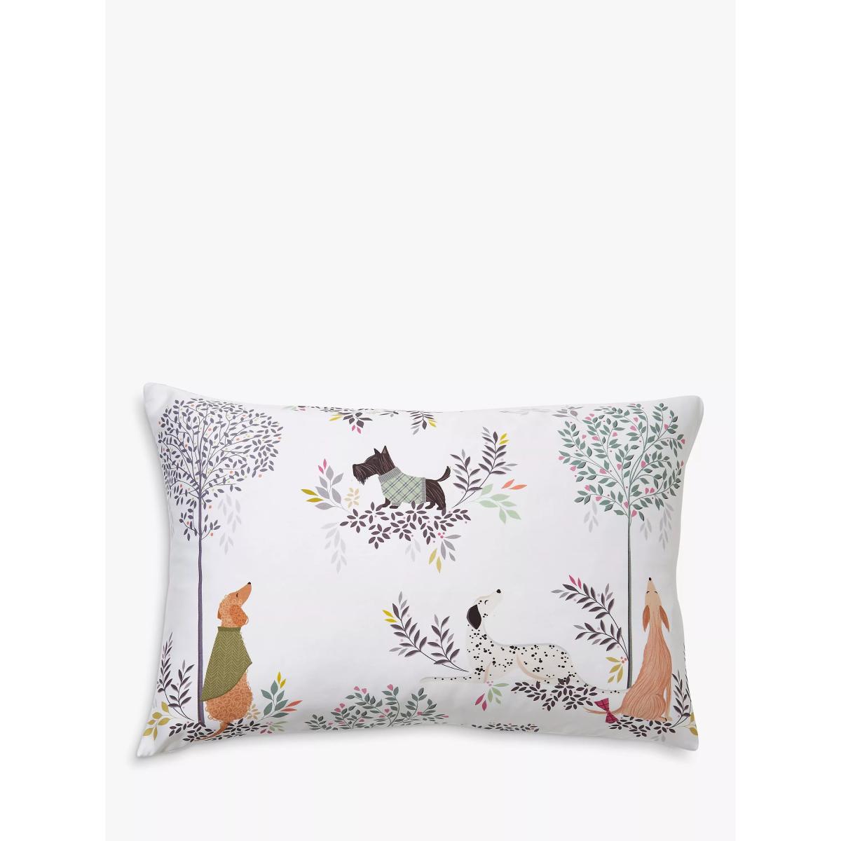 This charming Dapper Dogs duvet cover set from Sara Miller London features array of well-dressed dogs amid amongst beautiful woodland. Printed on plush 220 thread count 100% cotton sateen on crisp white with coordinating soft green herringbone print underside, this playful print will add character to any room. The single size comes with one standard pillowcase. All other sizes come with two standard pillowcases. Bedding sizes To fit duvet/pillow size (cm) Standard pillowcase, L75 x W50cm Single duvet cover, L200 x W137cm Double duvet cover, L200 x W200cm King duvet cover, L220 x W225cm Super King duvet cover, L220 x W260cm