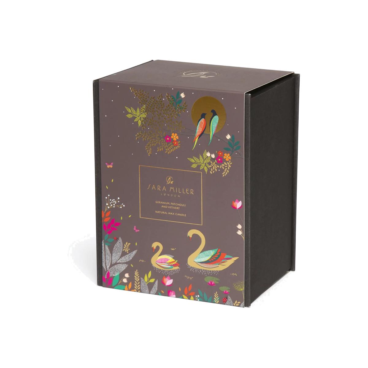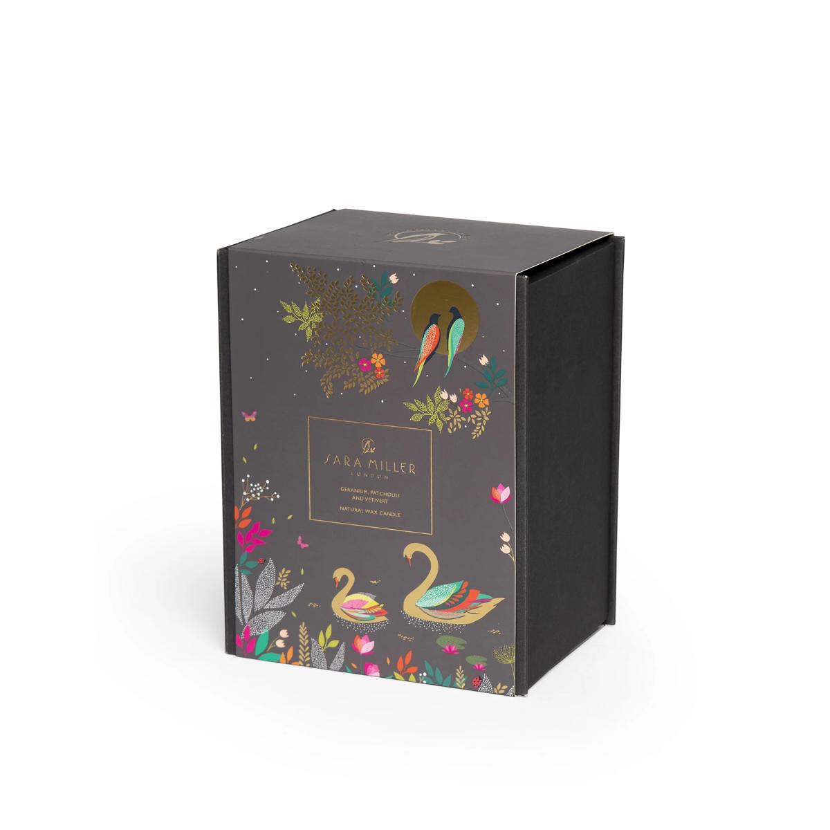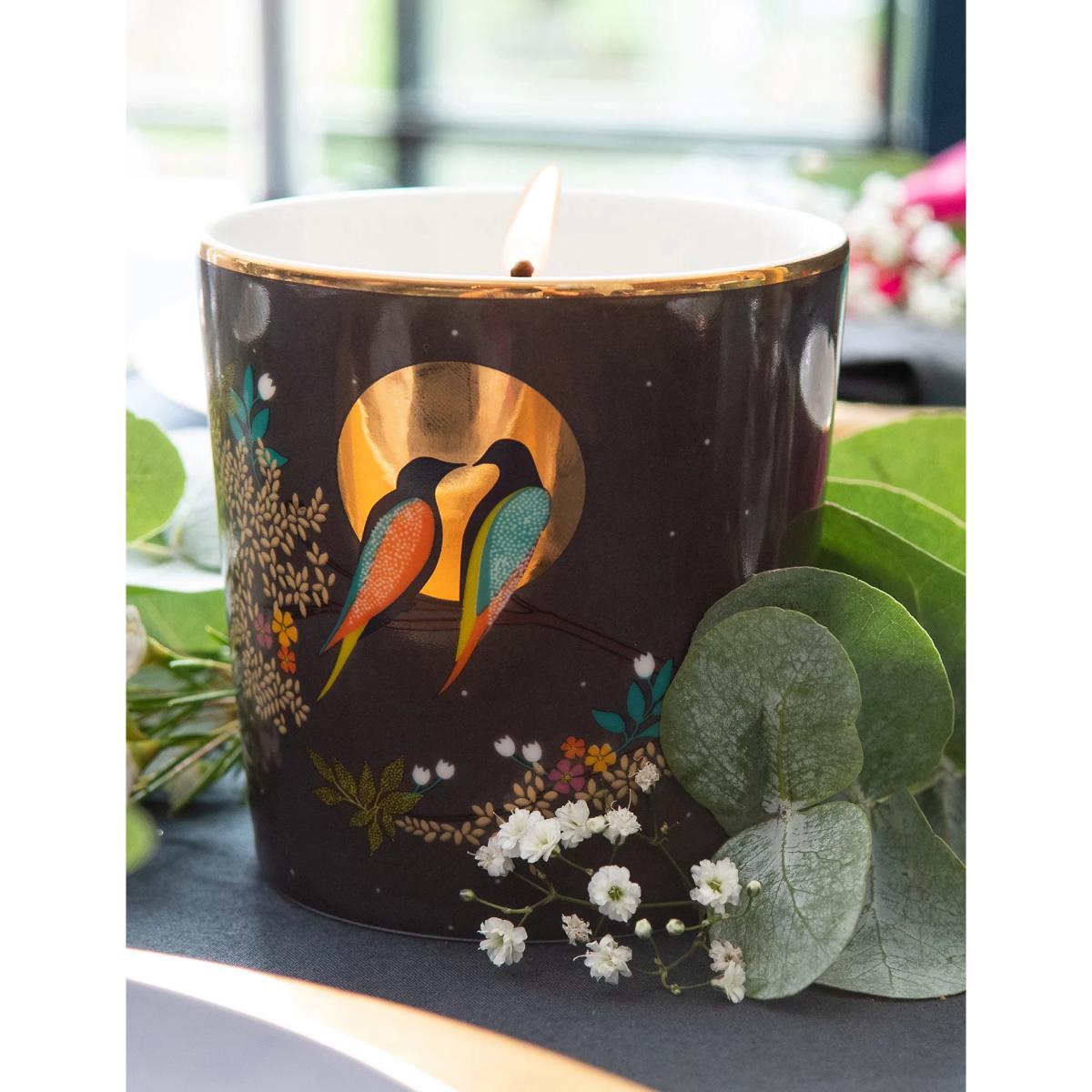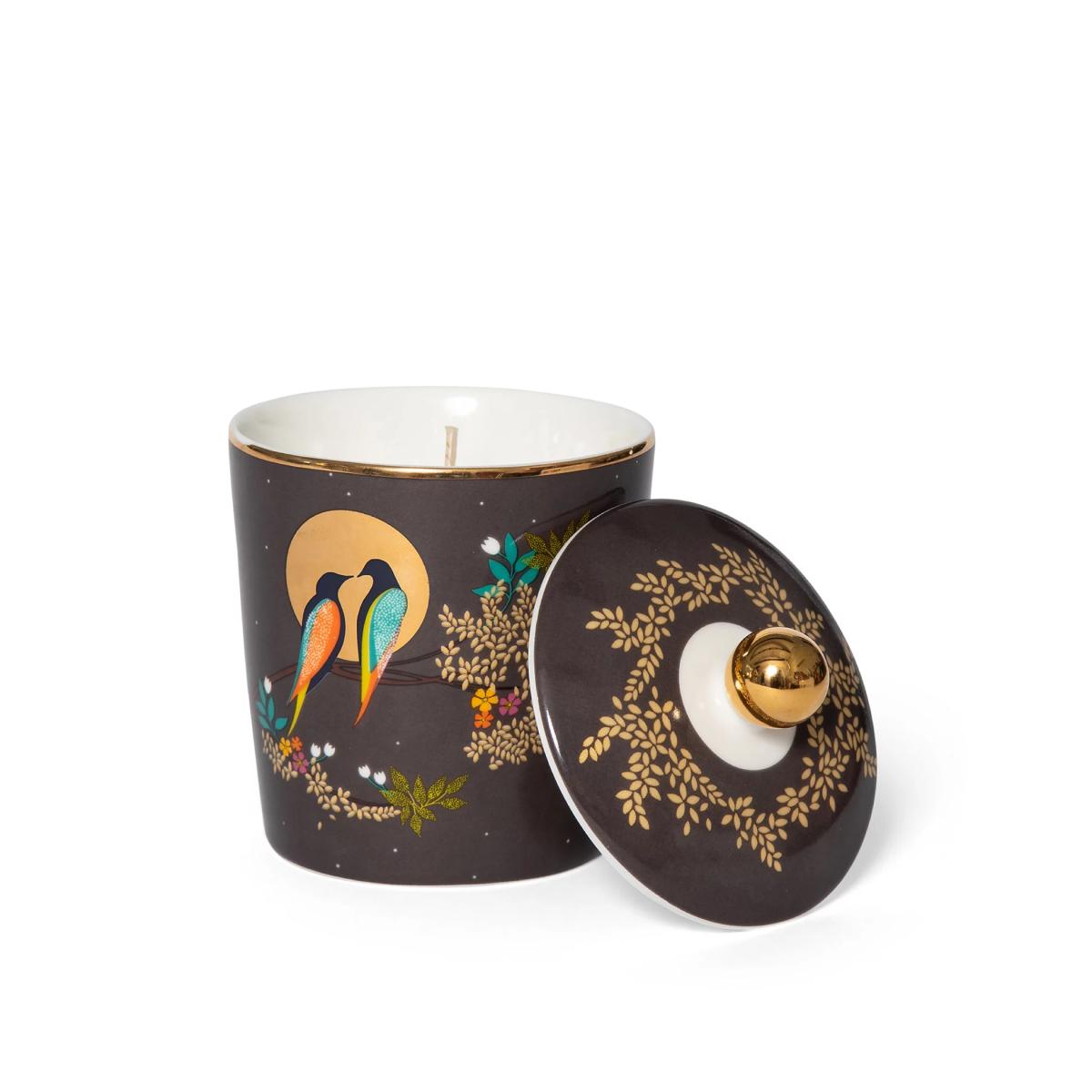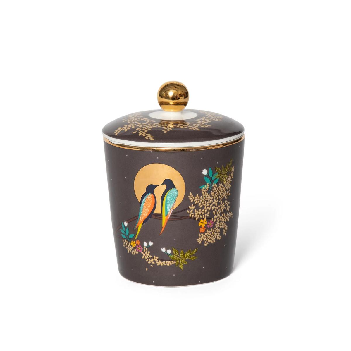 Create an uplifting and tranquil atmosphere in your home with this scented candle from Sara Miller, made from a natural coconut wax blend. Notes of geranium, patchouli and vetivert are complemented by floral jasmine and Asian rose, as well as warm, sensual oud and praline. Its lidded ceramic jar is decorated with a striking design of birds, and embellished with gold foil details.