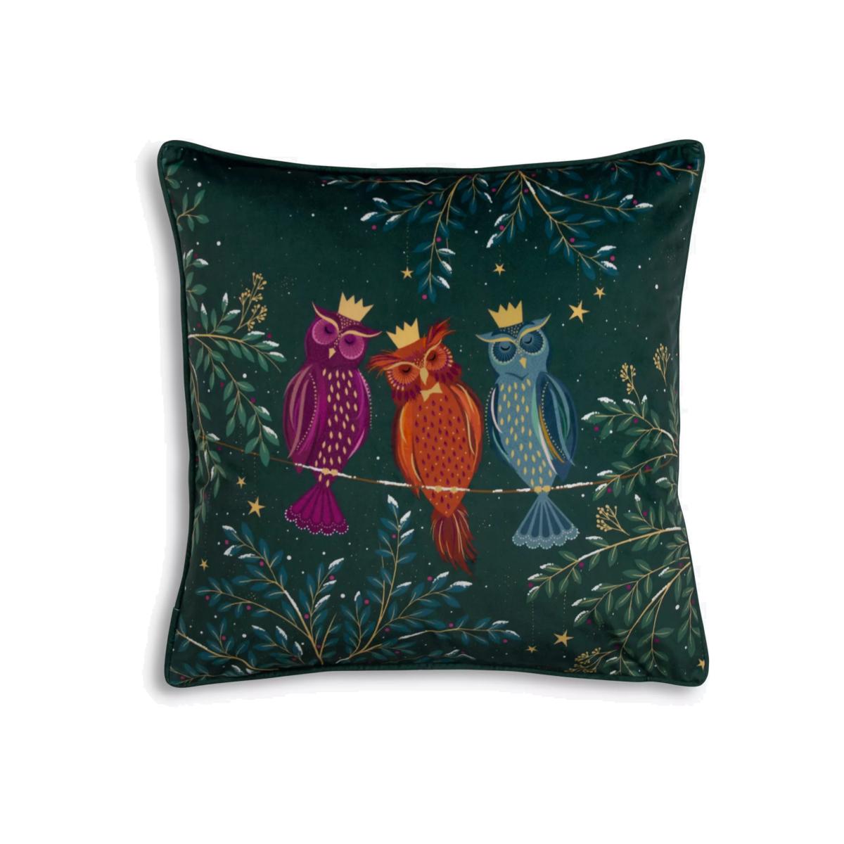 Sara Miller Moonlit Dreams Wood Owls Christmas Cushion