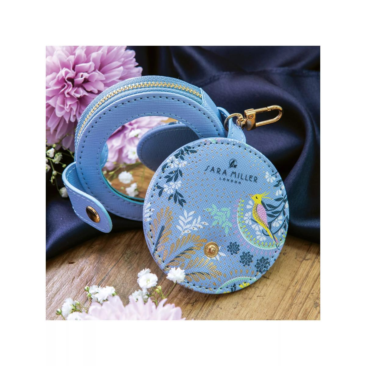 Accessorise your bag or keys with this key ring pouch which combines the exquisite design aesthetic of Sara Miller with the functional features to keep little items safe. Unfasten the popper to reveal a sweet little mirror.