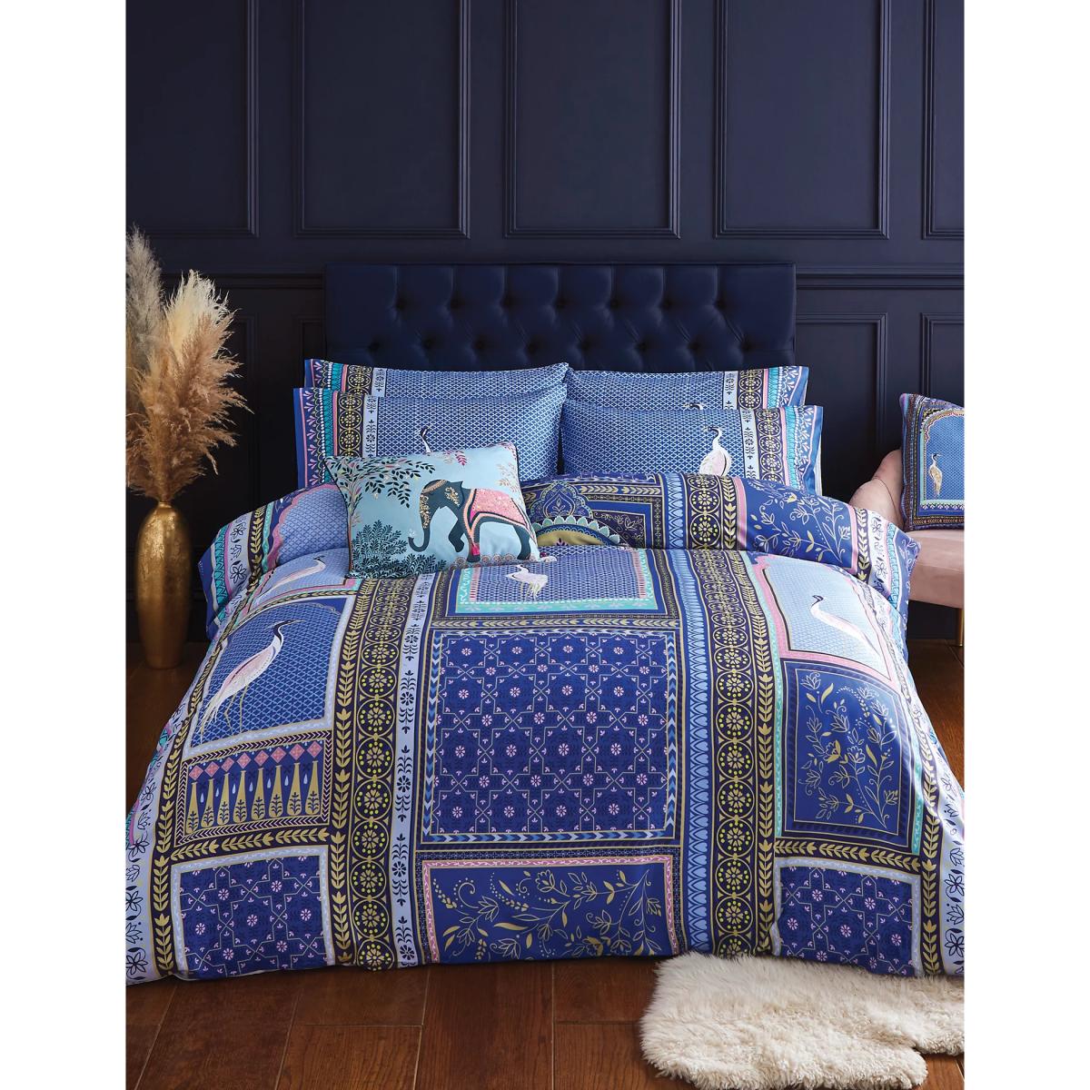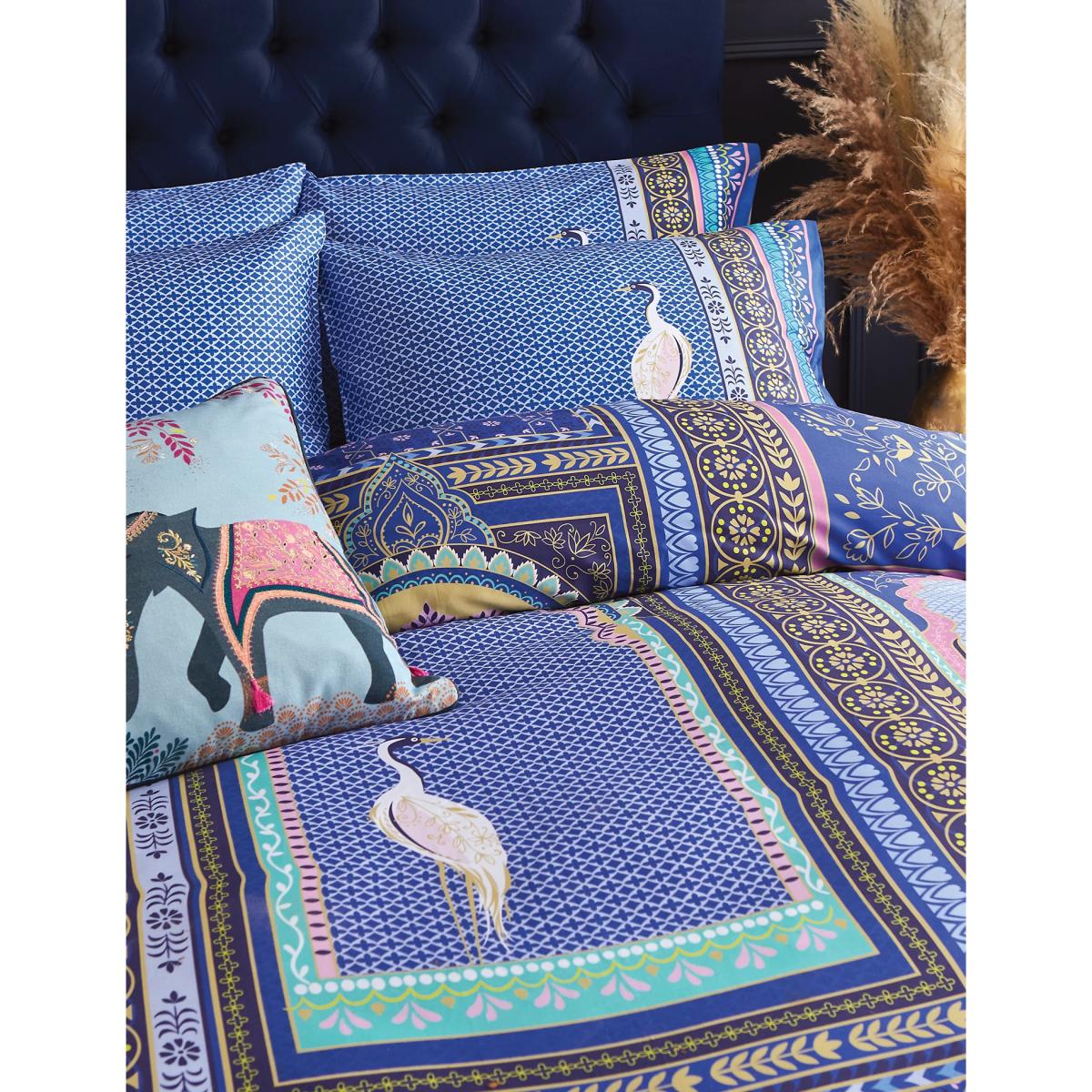 This Sara Miller London set is perfect for those who like their bedding bold. The exotic design features elegant storks, frescoed archways and colourful borders. It's digitally printed onto luxurious 220-thread count cotton sateen, known for its smooth and strong finish.
