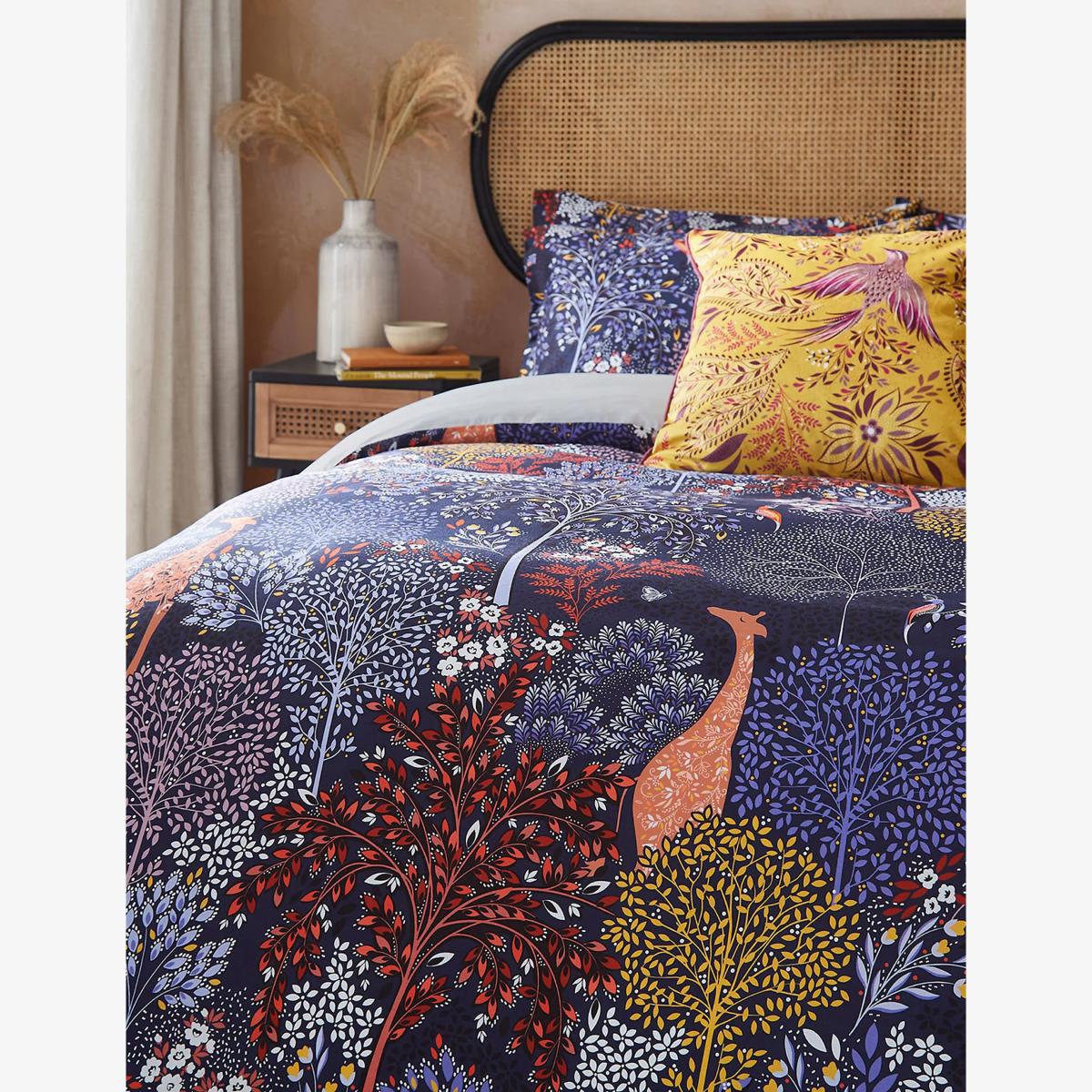 Transform your bedroom into a tropical paradise with this printed bedding set from Sara Miller. The tropical Giraffes Sanctuary design features elegant animals and birds nestled amongst richly coloured trees. It's digitally printed onto luxurious 220 thread count cotton sateen for a smooth feel.