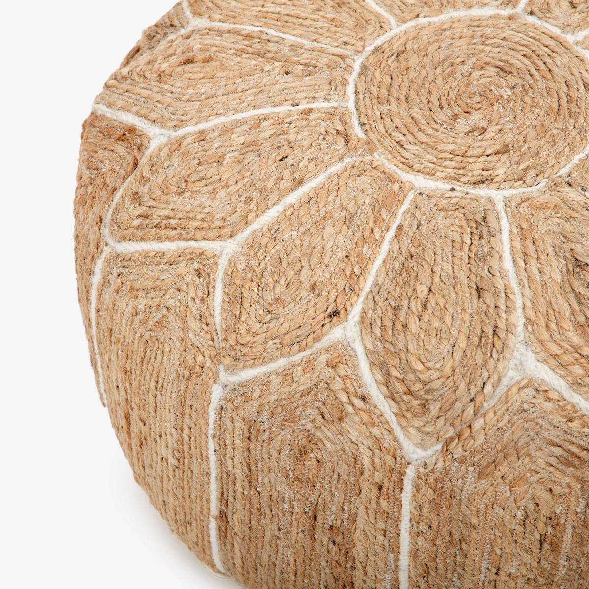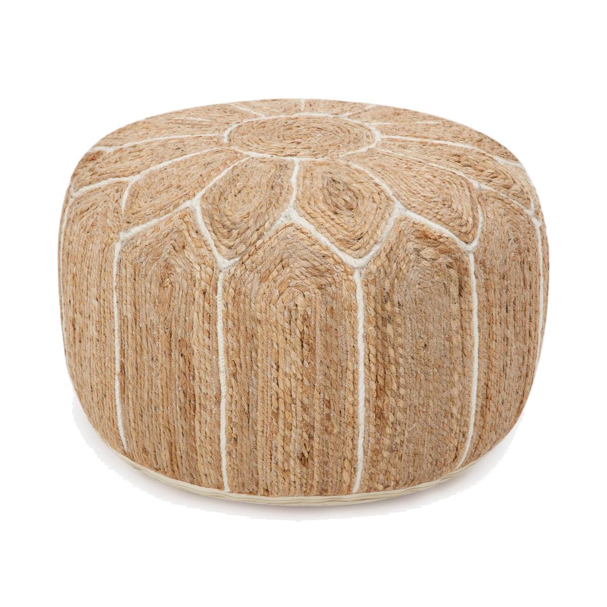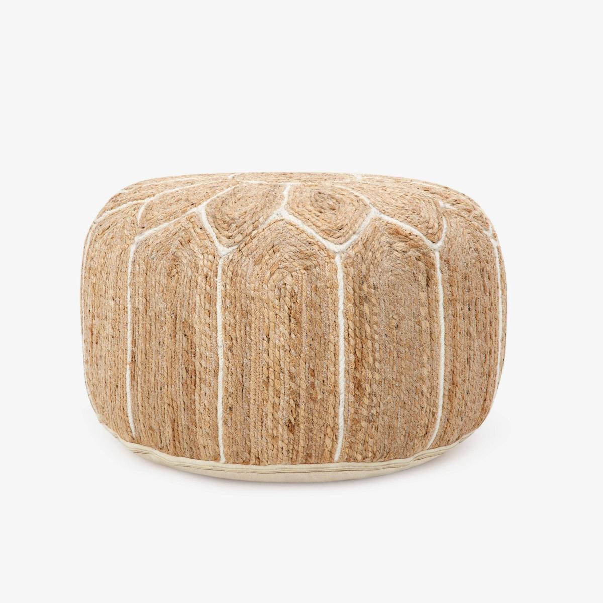 With our Sarati pouffe, you can add a stylish update to your room while still enjoying textural comfort. This stunning pouffe will enhance any space, from the living room to the bedroom, study, or dining room. Its thoughtful design combines comfort with a multifunctional purpose, so it can be used as additional seating or as a tray rest. Our elegant Sarati pouffe, made in India by skilled artisans, combines ivory and natural texture for those who love a bohemian vibe.