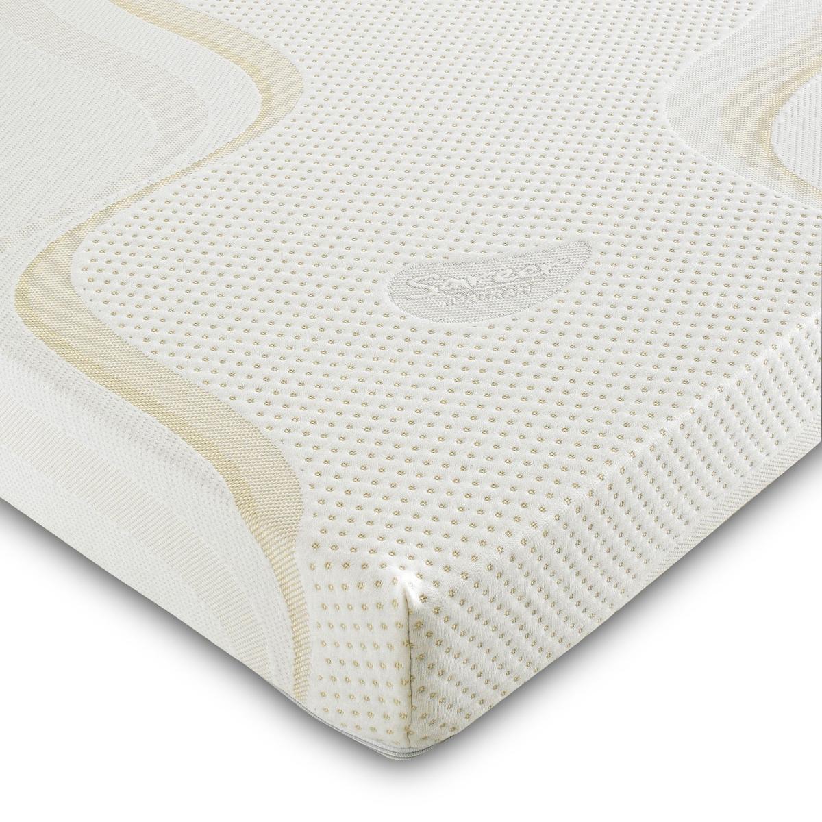 * Polyester mattress* Arrives rolled* Hypoallergenic* Soft knit cover This mattress's reflex foam layer offers excellent spinal support, promoting proper alignment and relieving pressure. Its soft-knit cover adds a touch of comfort and breathability, while dust-mite resistance ensures a cleaner sleep environment. With a no-turn design for ease of care, this mattress combines durability with exceptional sleeping comfort, perfect for everyday use.