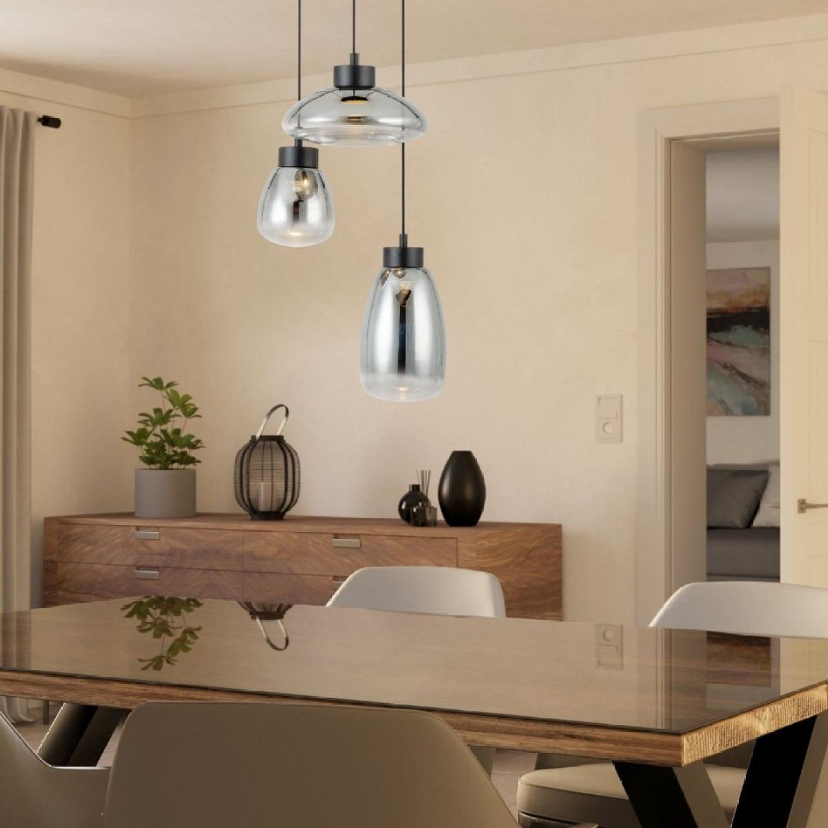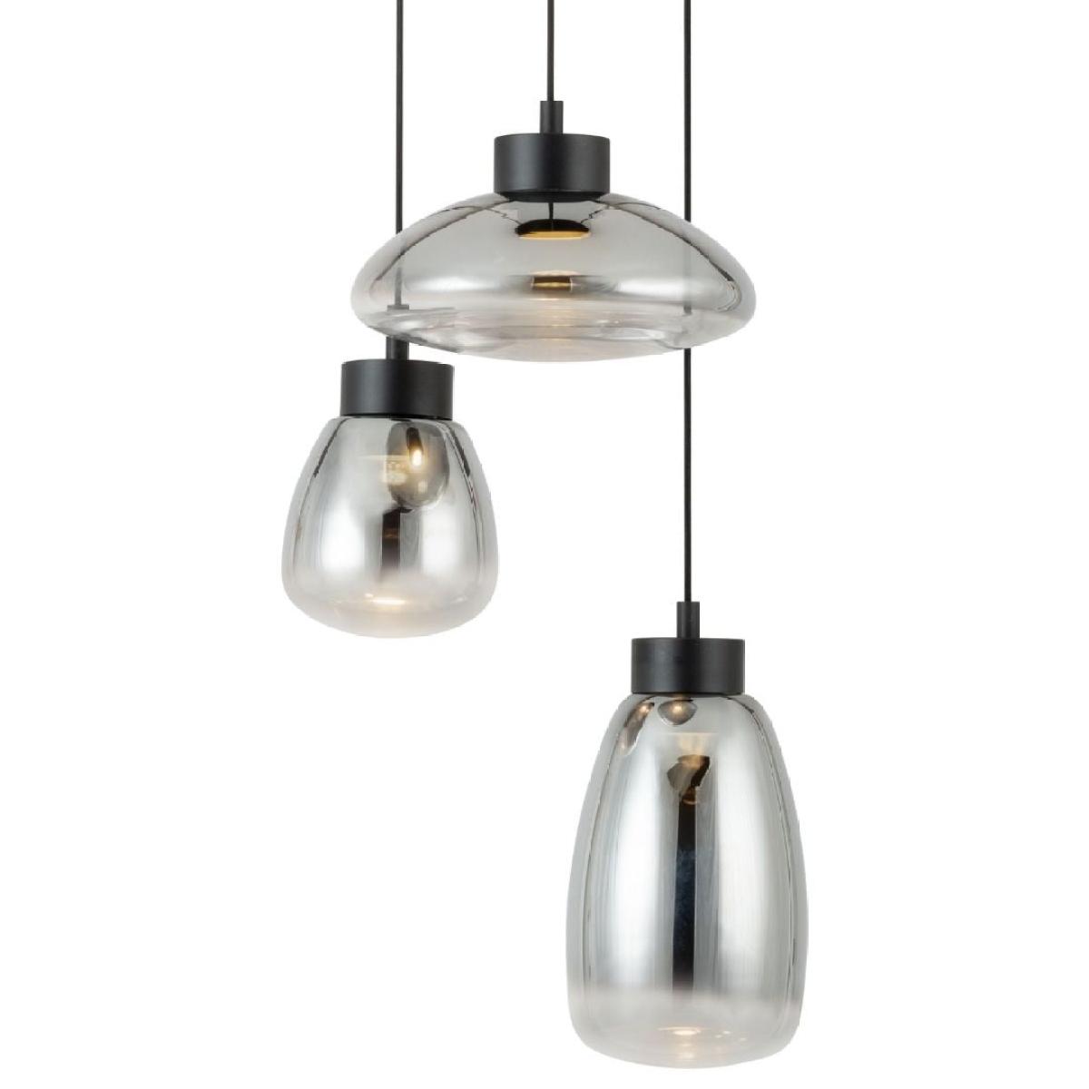 Sarnarra 3-light LED cluster pendant, featuring curved smoked glass shades, black fixtures and a hidden bulb design. A perfect blend of modern sophistication and elegant design, this stunning fixture features three gracefully curved smoked glass shades that add a touch of mystique and refinement to any space. The black fixtures provide a sleek, contemporary contrast, enhancing the overall aesthetic of the light. The Sarnarra cluster pendant's hidden bulb design ensures a seamless and clean look, allowing the beauty of the smoked glass shades to take center stage. The LED technology provides energy-efficient and long-lasting illumination, casting a warm and inviting glow that creates a cosy ambiance. Ideal for dining areas, kitchen islands or living spaces, the Sarnarra cluster pendant offers both functionality and style. The cluster design adds a dynamic visual element, while the smoked glass shades diffuse light beautifully, providing a soft and atmospheric lighting effect. Sarnarra 3-light LED cluster pendant, featuring curved smoked glass shades, black fixtures and a hidden bulb design. A perfect blend of modern sophistication and elegant design, this stunning fixture features three gracefully curved smoked glass shades that add a touch of mystique and refinement to any space. The black fixtures provide a sleek, contemporary contrast, enhancing the overall aesthetic of the light. The Sarnarra cluster pendant's hidden bulb design ensures a seamless and clean look, allowing the beauty of the smoked glass shades to take center stage. The LED technology provides energy-efficient and long-lasting illumination, casting a warm and inviting glow that creates a cosy ambiance. Ideal for dining areas, kitchen islands or living spaces, the Sarnarra cluster pendant offers both functionality and style. The cluster design adds a dynamic visual element, while the smoked glass shades diffuse light beautifully, providing a soft and atmospheric lighting effect.