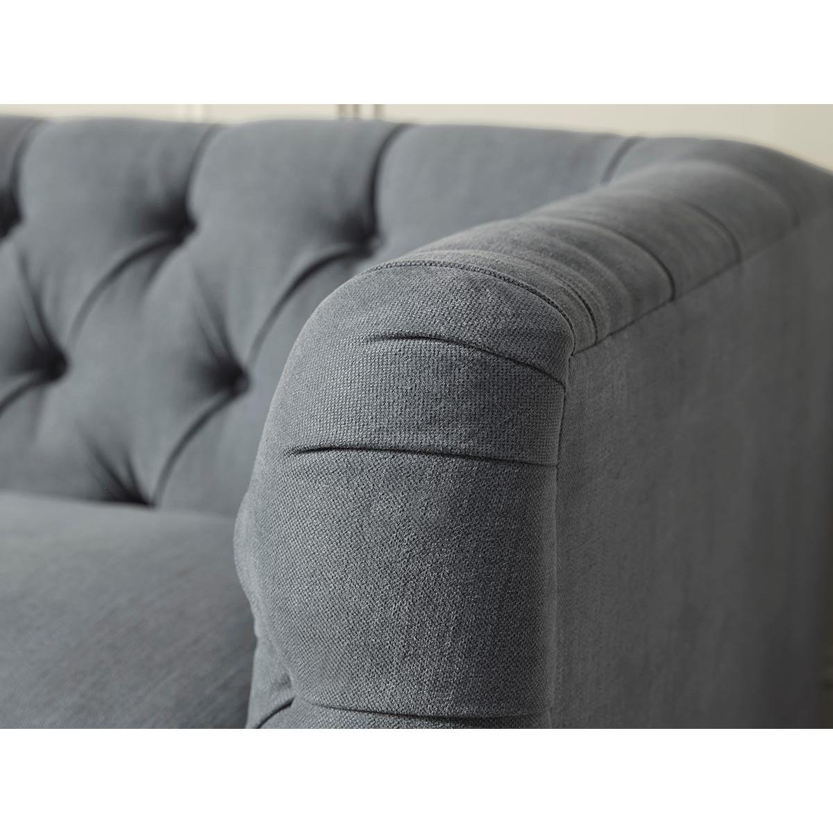 Our Sarnia corner sofa is a visually stunning arrangement of deep plump cushions and hand tufted buttons. With a form that shelters and cocoons, this lovely L-shaped sofa will transform an open plan living space or smart living room with its timeless good looks and robust durability. The Sarnia range includes two seater and three seater sofas as well as a corner sofa, a loveseat and an ottoman. Our Sarnia collection can be upholstered in a choice of 33 distinctive shades and five fabrics to suit your style. Read our Upholstery FAQs View our full Upholstery Terms and Conditions