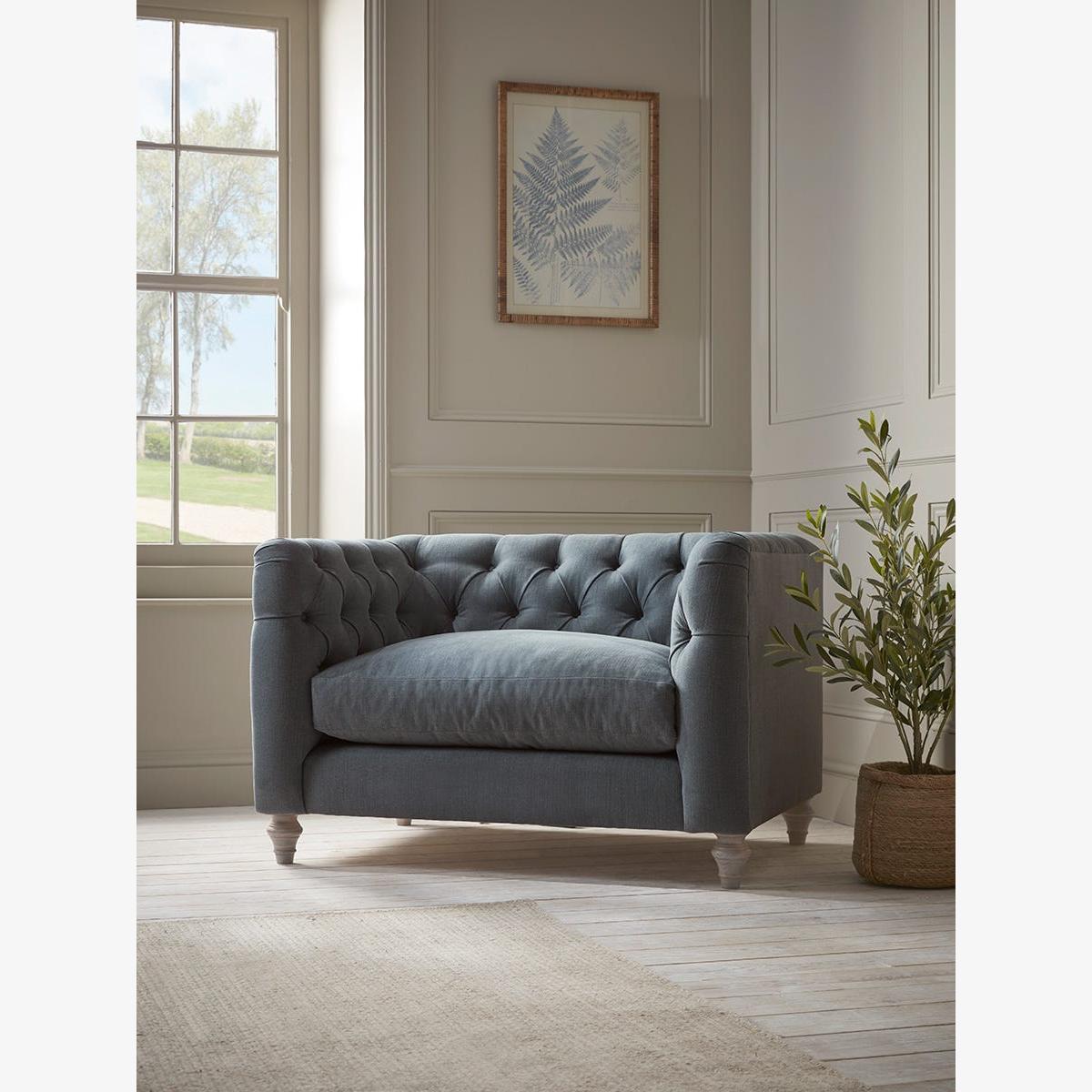 Echoing the lines of the Sarnia sofas, our Loveseat provides a similarly cocooning arrangement of deep buttoned arm and backrests and impressively sumptuous seat cushions. The Sarnia range includes two seater and three seater sofas as well as a corner sofa, a loveseat and an ottoman. Our Sarnia collection can be upholstered in a choice of 33 distinctive shades and five fabrics to suit your style. Read our Upholstery FAQs View our full Upholstery Terms and Conditions