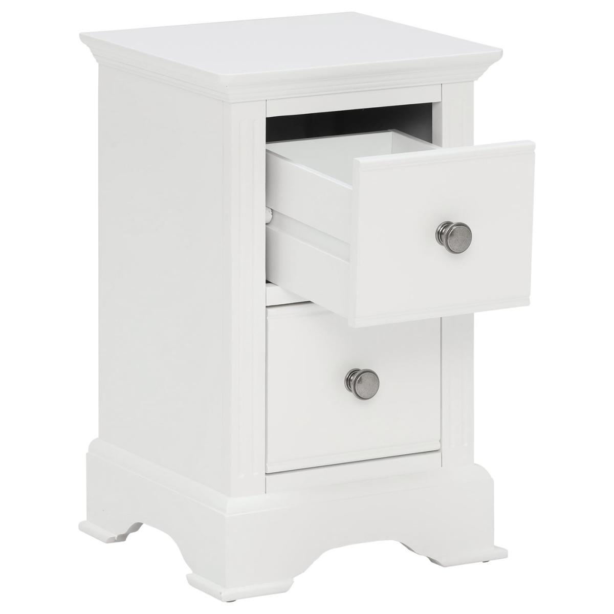 I love this bedside table because of its versatile design and calming grey wood finish, which works beautifully across a range of interiors. It’s perfect for adding a touch of understated elegance to traditional country schemes or contemporary bedrooms where clean, simple lines are key. A practical styling tip is to keep the surface clear with a small lamp, a book, or a few decorative accents, while utilising the drawers for essential storage. The classic shape and soft colour are especially effective when paired with pastel or neutral bedding, and the piece lends itself well to a layered look with textured textiles and organic décor. Overall, it’s a charming, functional choice that can adapt seamlessly to different styles.