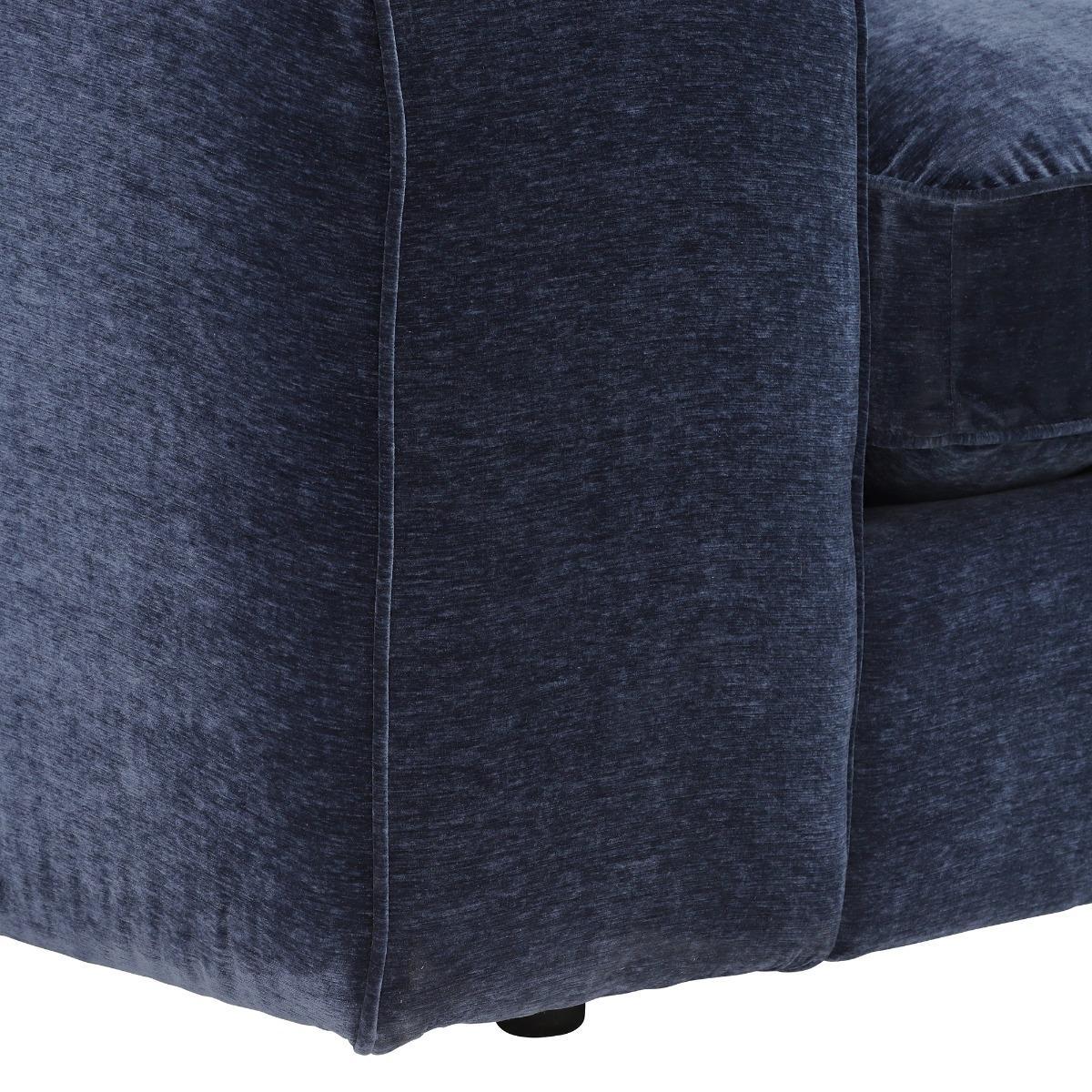 I love this sofa for its versatile size and contemporary silhouette, making it a great anchoring piece in both modern and transitional interiors. Its deep, plush seating invites relaxation, while the navy hue adds a sophisticated touch that pairs well with bold or muted colour schemes. To style it effectively, consider adding a mix of textured cushions and throws in complementary shades for visual interest. It works especially well in open-plan living spaces or larger family rooms, where its generous shape encourages socialising. For a balanced look, keep surrounding furniture sleek and minimal to let the sofa be the statement piece.
