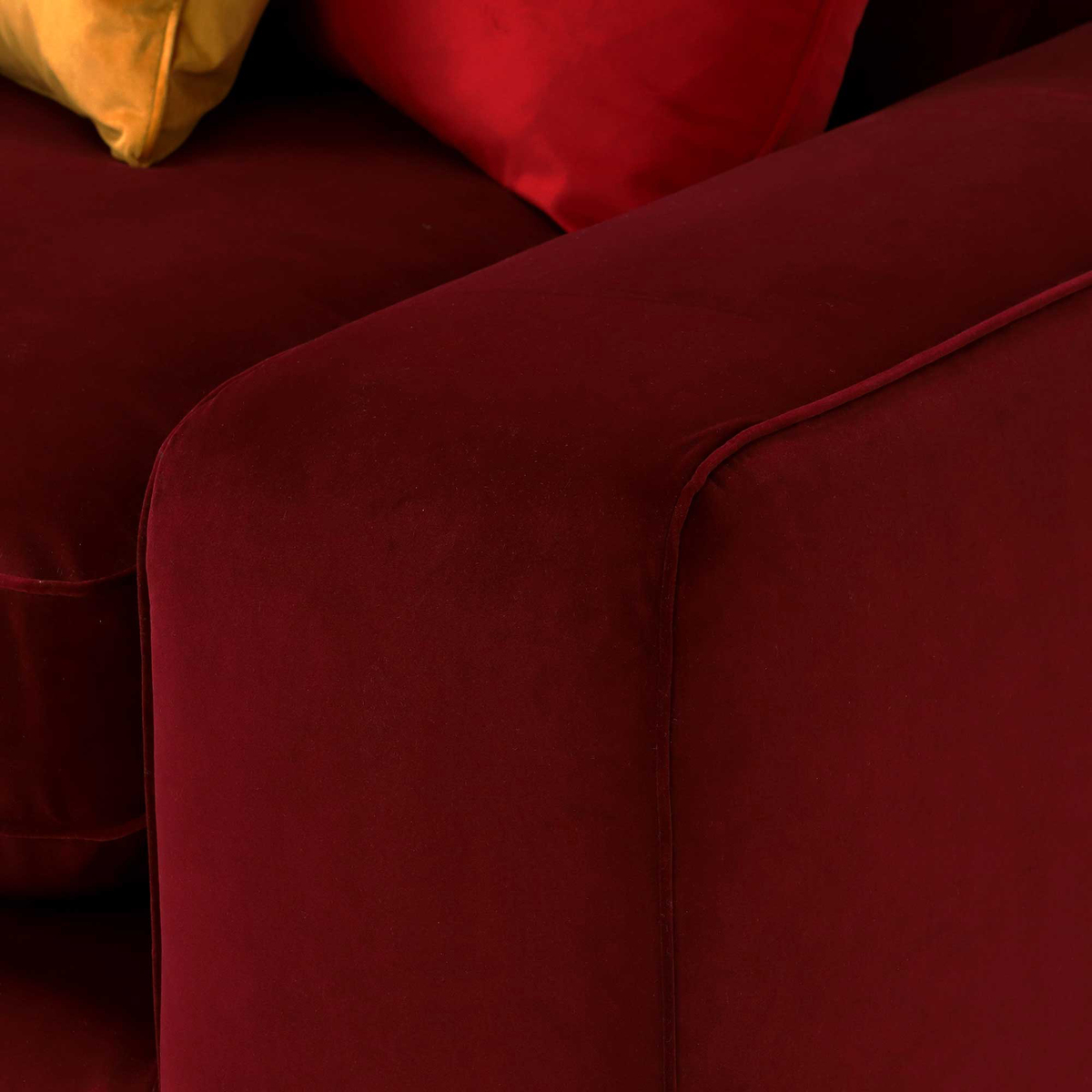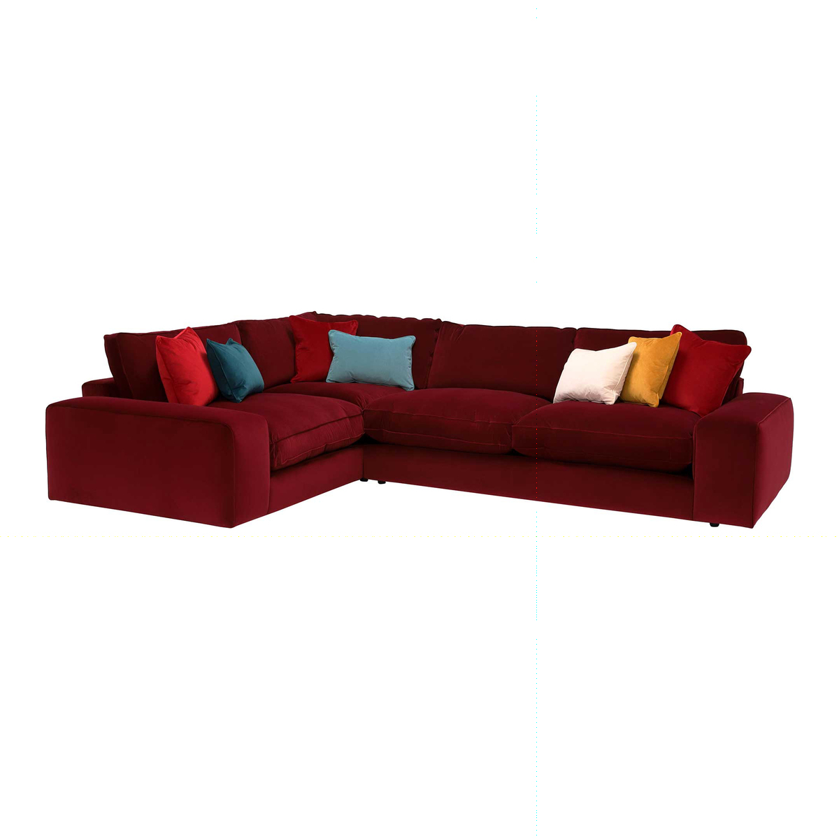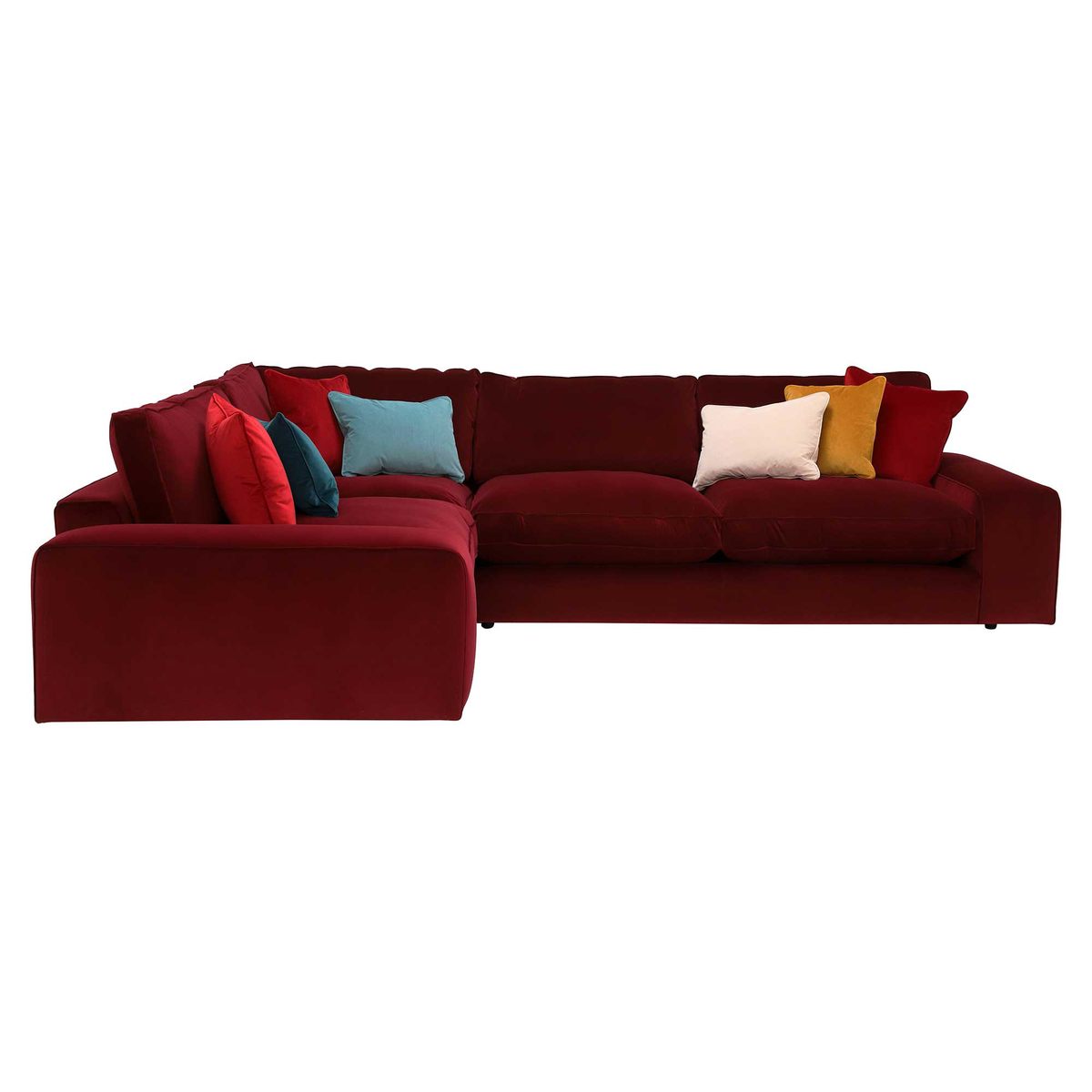 Design. A sumptuous selection that was made to be sank into, the Sasha left hand facing corner sofa benefits from decadently deep seats filled with Encore foam and fibre, and topped with plump feather scatter cushions for added softness. Upholstered in your choice of 7 coloured velvets, this stylish sofa has a luxurious quality that invites you in. Chunky armrests give Sasha a real presence, as well as practicality, making this velvet corner sofa a true statement piece in any living room.