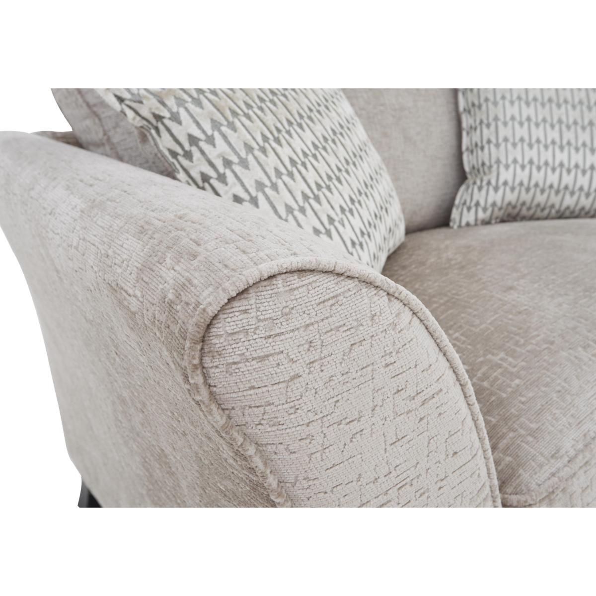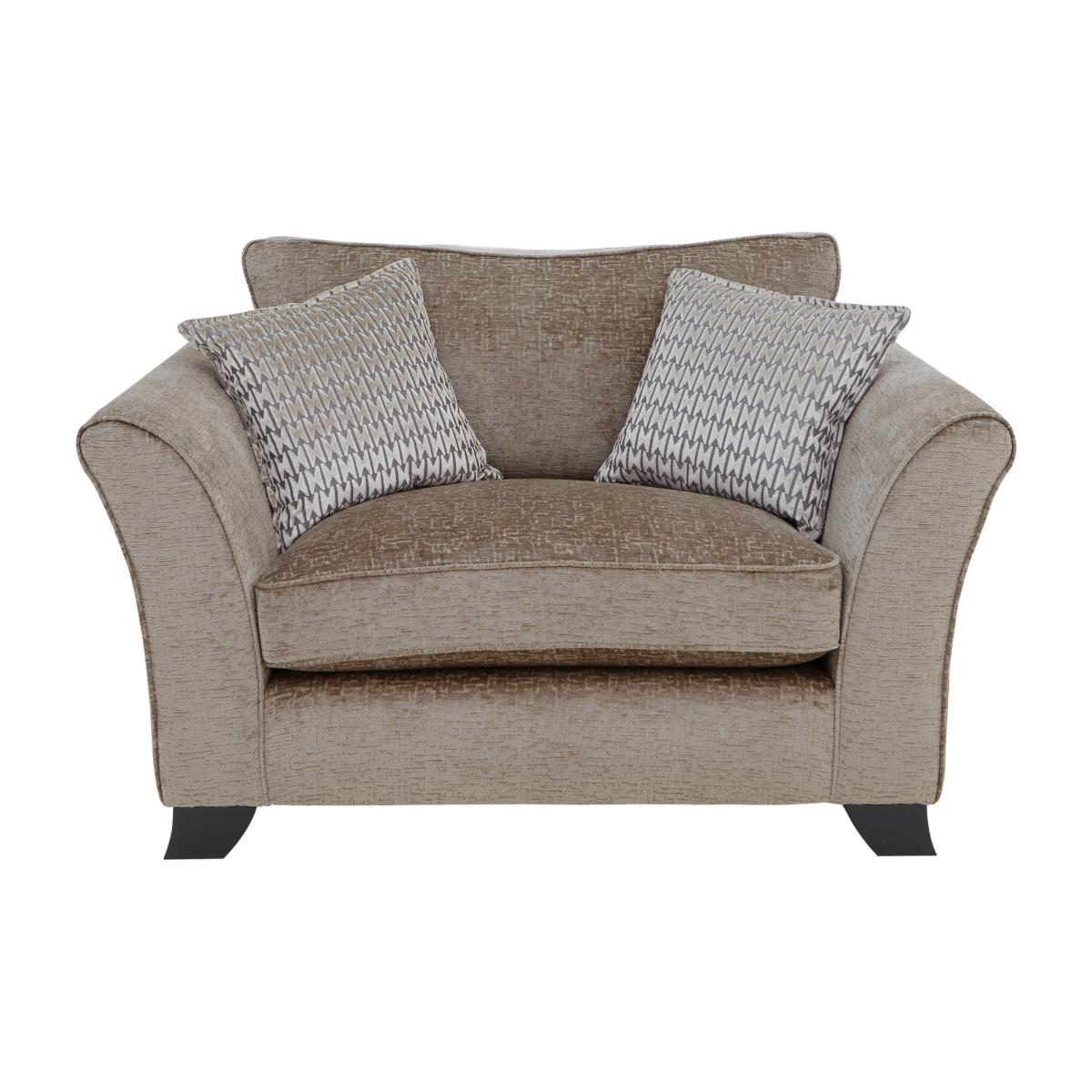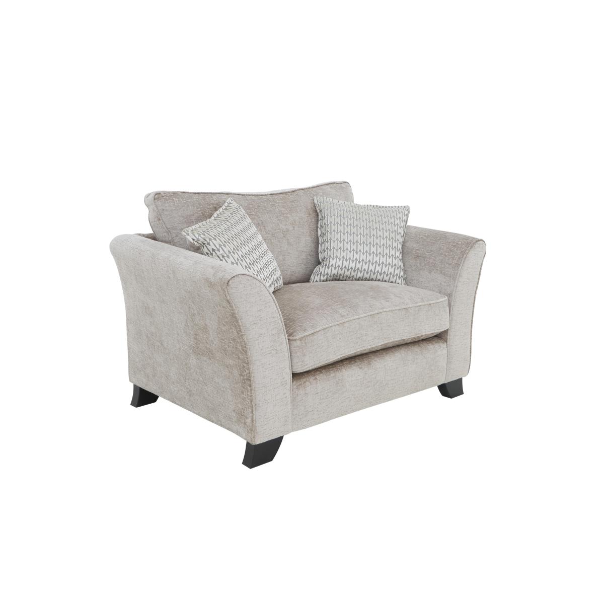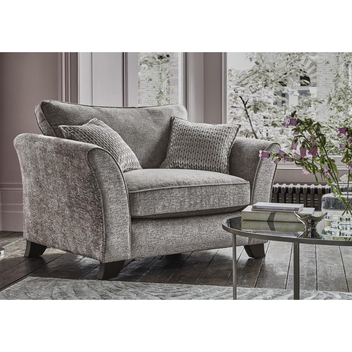Meet Sasha, a collection of sofas, sofa beds, armchairs and footstools that feels every bit as luxurious as it looks. That’s all thanks to the range's superior Encore foam seat cushions which are designed for maximum comfort with minimal maintenance – and even come with a 5-year plumpness guarantee. Showcasing understated glam style with graceful curved arms and incredibly soft jacquard chenille upholstery, the Sasha range is handcrafted in England and offers both classic back and scatter back sofas and armchairs. A Furniture Village exclusive. This glam snuggler chair seats two in cosy comfort. And it really is comfortable – the seat cushion even comes with a 5-year plumpness guarantee. Only at Furniture Village. Why you'll love it. A snuggler chair that feels as fabulous as it looks. Understated glam style. The sumptuous jacquard chenille upholstery takes softness to a new level. Incredibly comfortable seat cushion is designed to spring back into shape. Seat cushion has a 5-year plumpness guarantee. Pair of contrast-fabric scatter cushions included. Reversible seat and back cushions mean your snuggler chair lasts even longer. Handcrafted in England and only at Furniture Village. This snuggler chair is part of the Sasha range of sofas, sofa beds and more. What you need to know. Medium comfort level. Dark wood feet. Seat suspension: zig-zag springs. Seat cushion: Encore foam, firm front edges. Back support: high-resilience webbing. Back cushion: fibre. Scatter cushions: feather. Some fabrics can show wear on areas of more use or in direct sunlight. Flattening and shading of heavy wear areas on pile fabrics like chenille is unavoidable. Please read our upholstery care guide for more advice.