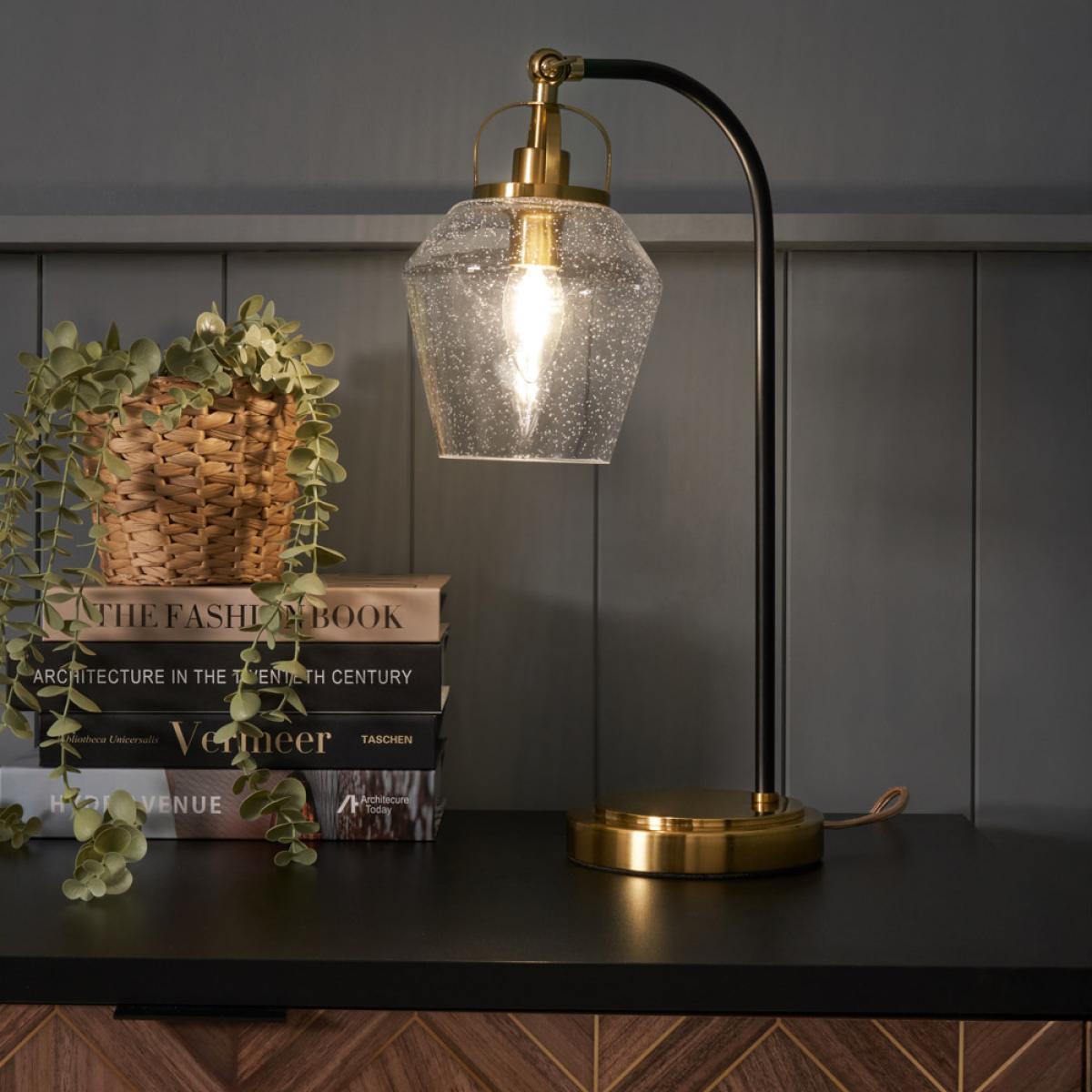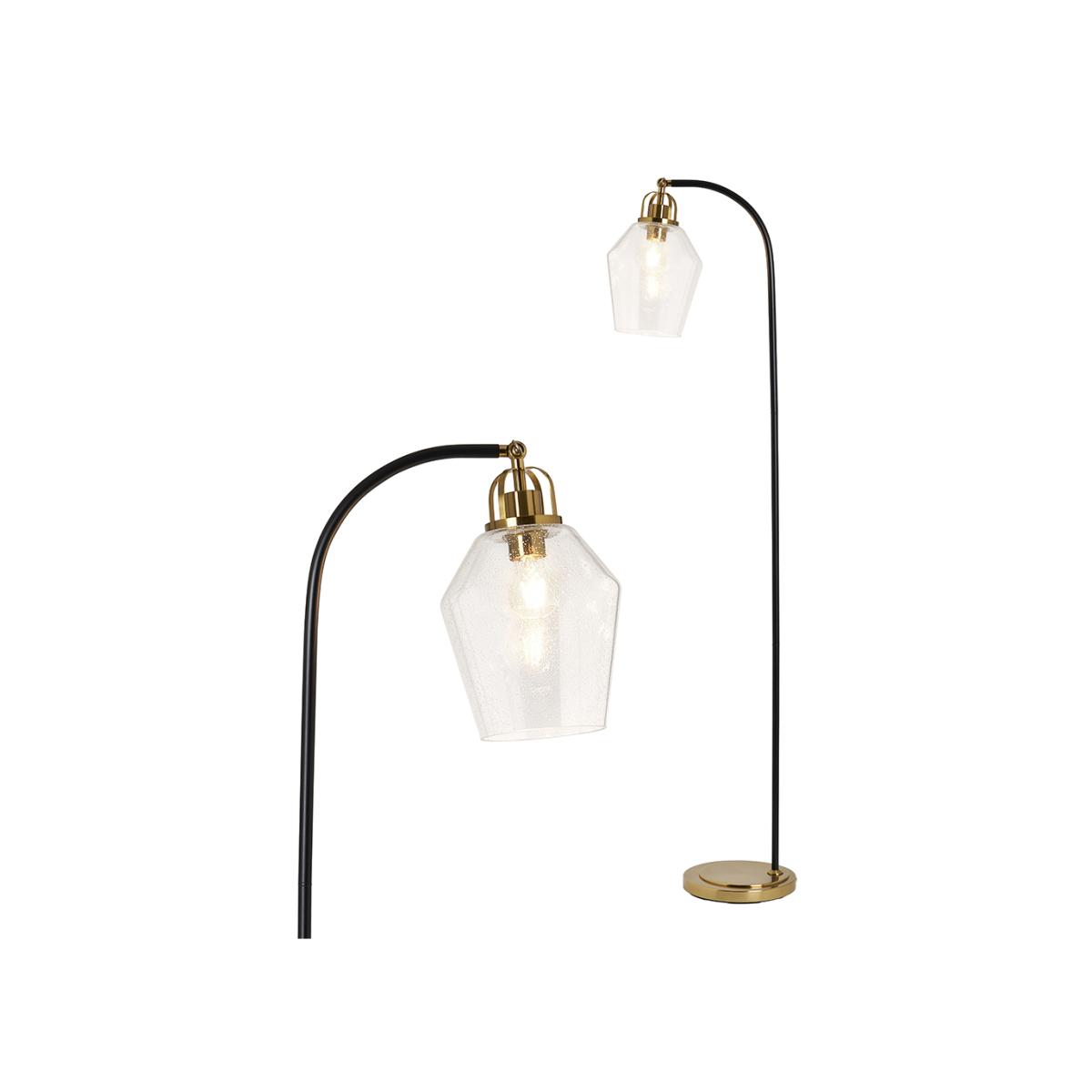 Introduce a statement piece into your decor with the Saskia Bubble Glass Arc Floor Lamp in satin brass. This floor lamp features a graceful arc design and a bubble glass shade, perfect for enhancing living rooms and reading corners. Its satin brass finish and modern silhouette add sophistication and functionality. Arc design provides a modern, stylish silhouette; Bubble glass shade offers a soft, warm glow; Satin brass finish adds elegance to any room.