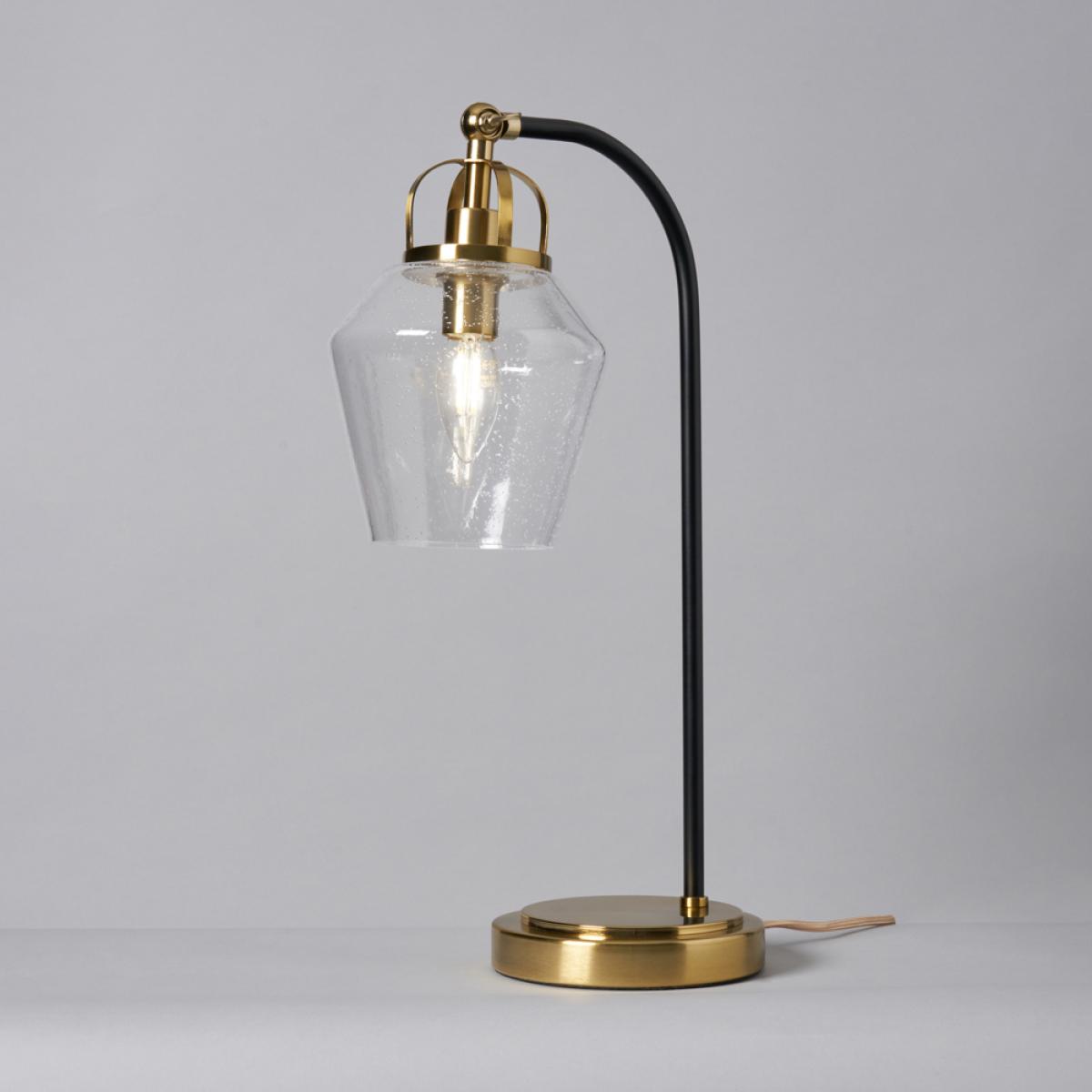 Elevate your space with the Saskia Bubble Glass Arc Table Lamp in satin brass. This sleek table lamp combines a curved arc with a bubble glass shade, offering a unique design that suits modern interiors. Perfect for bedside tables or office desks, it provides soft lighting while making a style statement. Curved arc design with a contemporary feel; Satin brass and bubble glass create an elegant look; Compact size ideal for desks, tables, and bedside lighting.