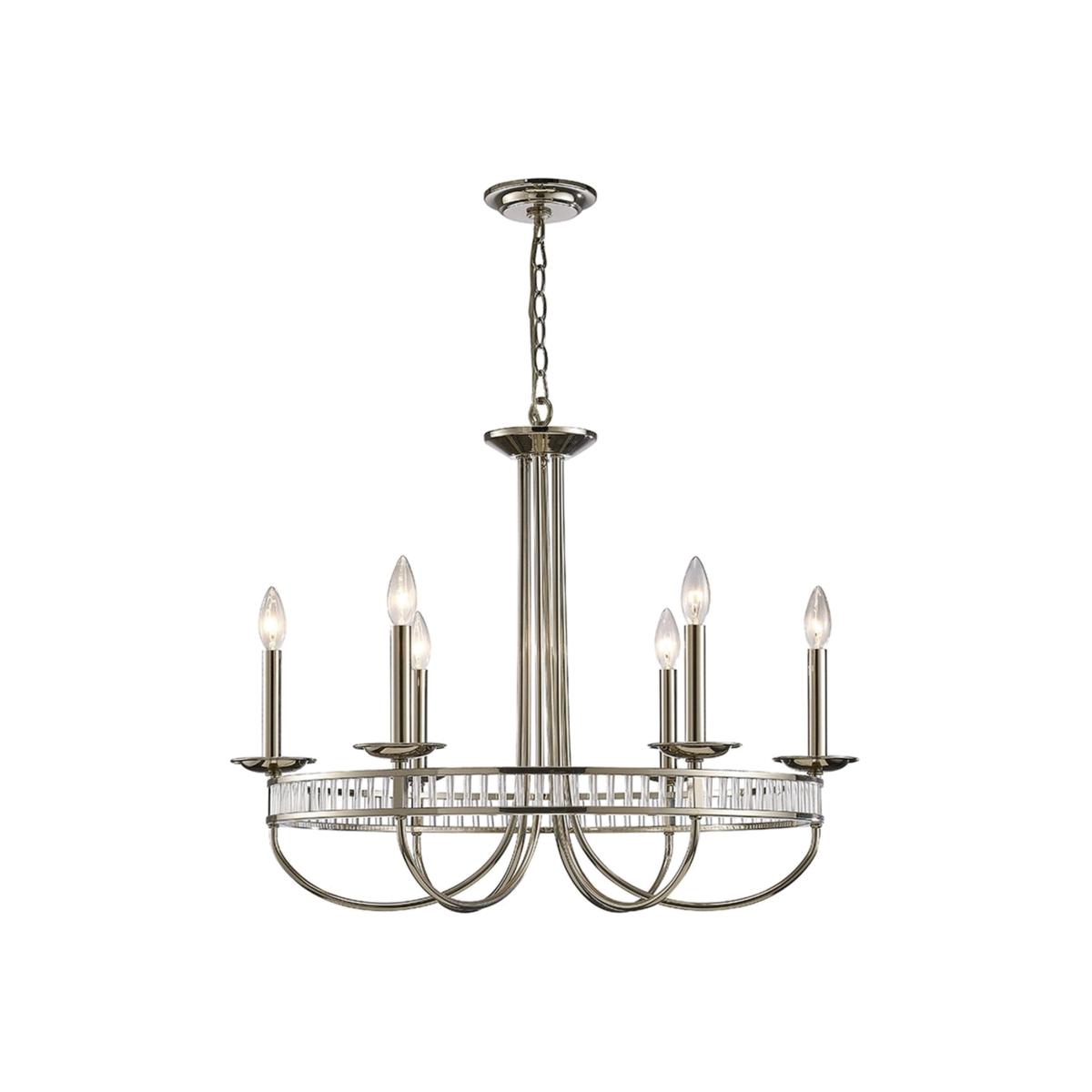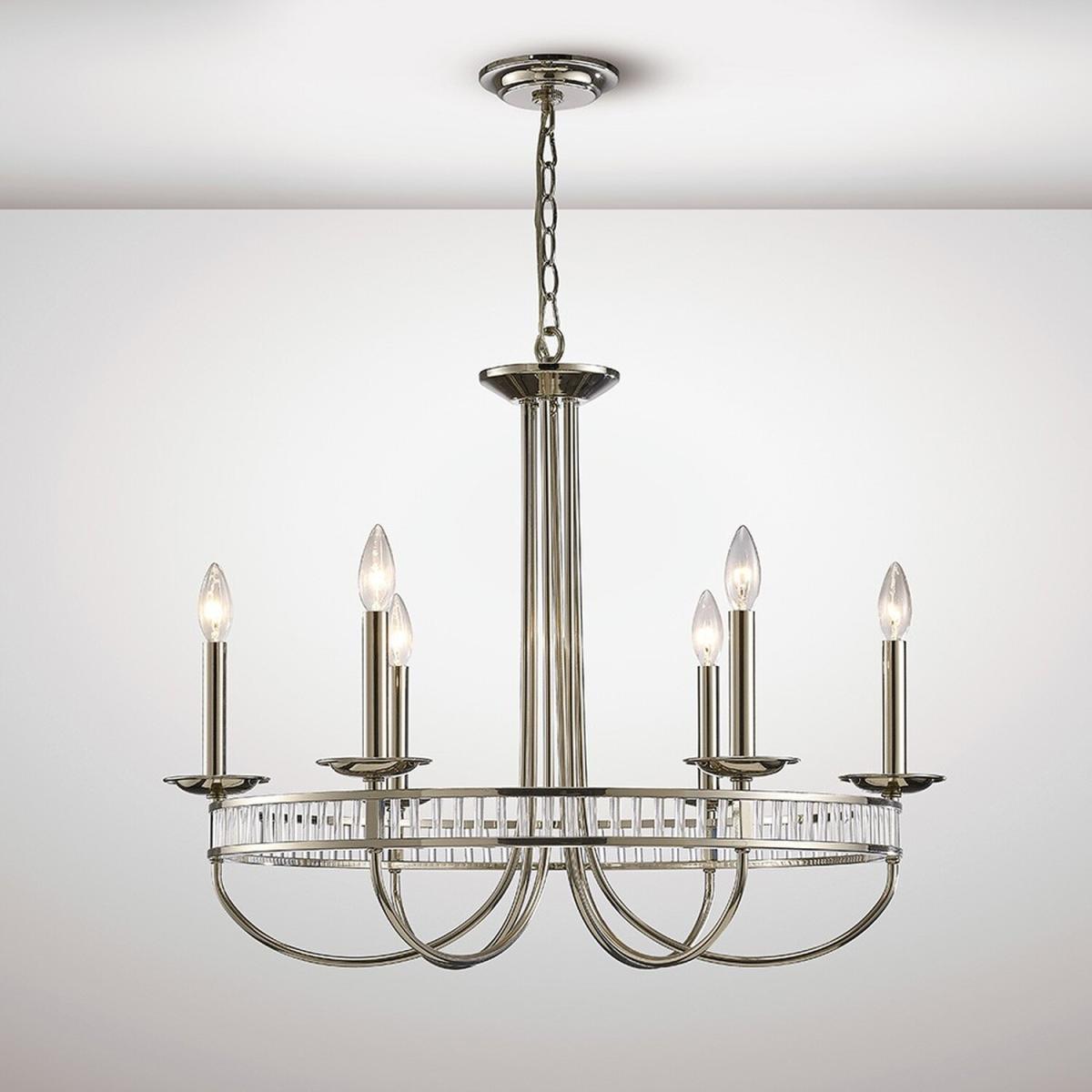 Saskia Round Ceiling Pendant 6 Light E14 Polished Nickel, Crystal - Polished Nickel