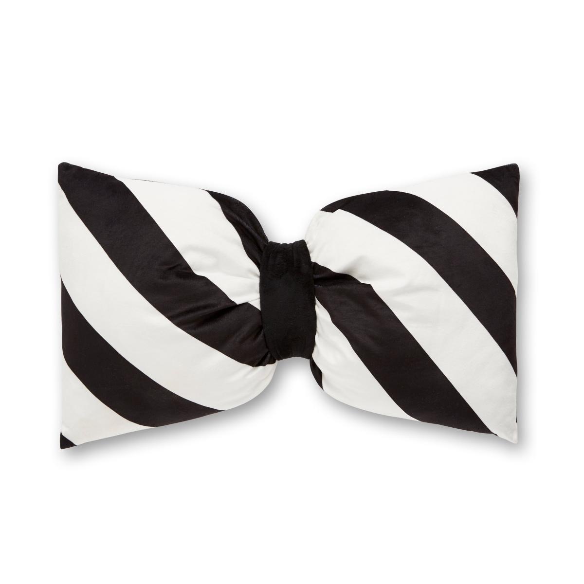 * Unique shape * Striped design * Soft cover Featuring a bow shape and vibrant candy stripes, this cushion brings a touch of sweetness and personality to your décor. Its soft texture provides comfort and relaxation, perfect for creating a cozy atmosphere. A reminder to keep it away from lighter-coloured furnishings ensures its bold design stays looking fresh. Please note, this product is a cushion and not intended as a toy.