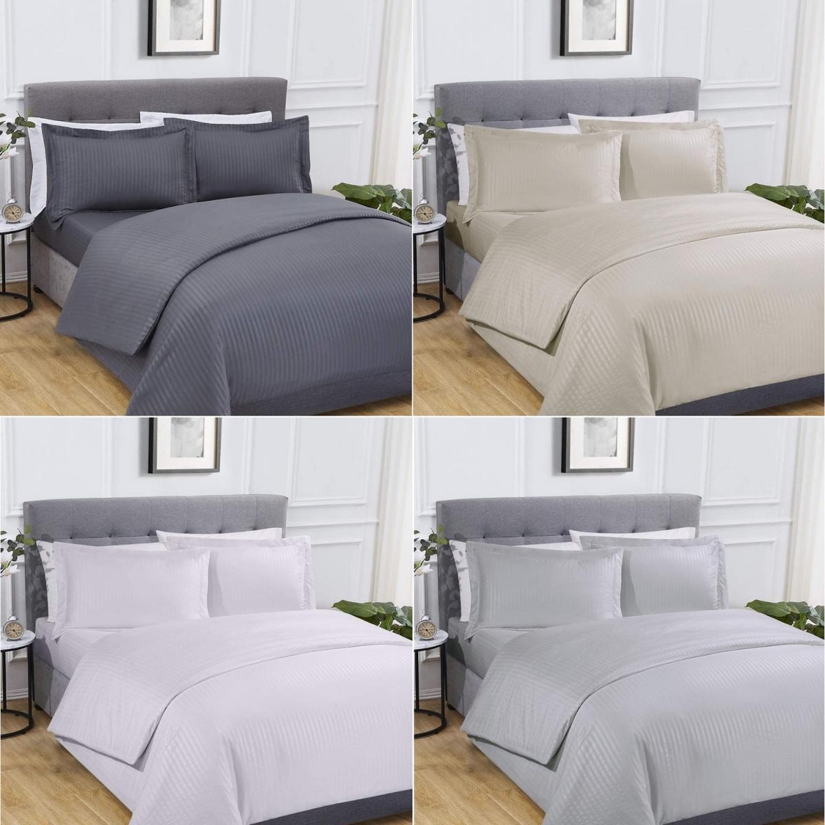Sleepdown Microfibre Sateen Stripe Super Soft Easy Care Complete Duvet Cover Quilt Bedding Set Pillowcase with Fitted Sheet. There is nothing quite like sliding into some beautifully soft bedding, especially as the nights draw in and we all go in search for something cosy and comforting. This beautifully simple plain dye duvet set is crafted from exquisitely soft microfibre, making it perfect for a cosy night's sleep. The set is easy care meaning it washes beautifully, dries quickly and requires minimal ironing making it perfect for today's busy family life. Available in a wide range of colours, the set can be incorporated into a variety of design schemes, offering a simple clean look and a soft and comforting texture.