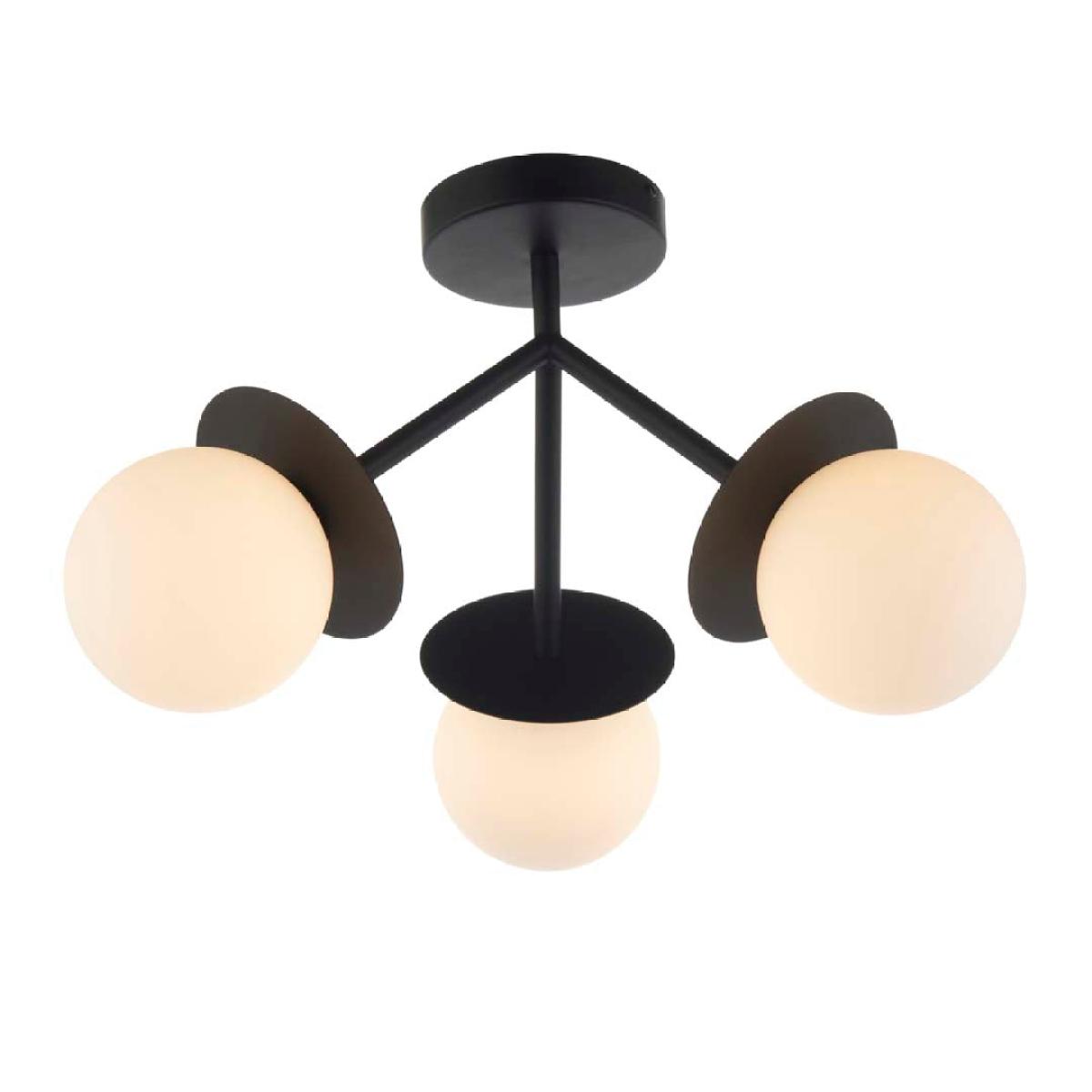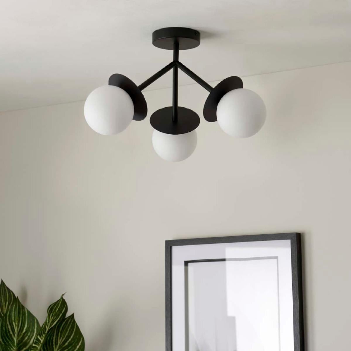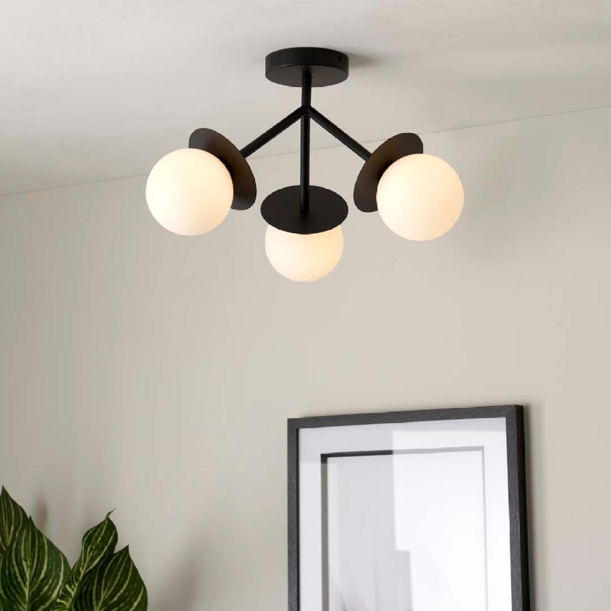 Stylish semi flush ceiling light boasting matt black finish The Satellite semi-flush is a modern fitting boasting a matt black finish and 3 opal shades. This ceiling pendant is perfect for adding an eye-catching element to any space. Perfect for use in bedrooms, lounge and hallways. Stylish semi flush ceiling light boasting matt black finish The Satellite semi-flush is a modern fitting boasting a matt black finish and 3 opal shades. This ceiling pendant is perfect for adding an eye-catching element to any space. Perfect for use in bedrooms, lounge and hallways.