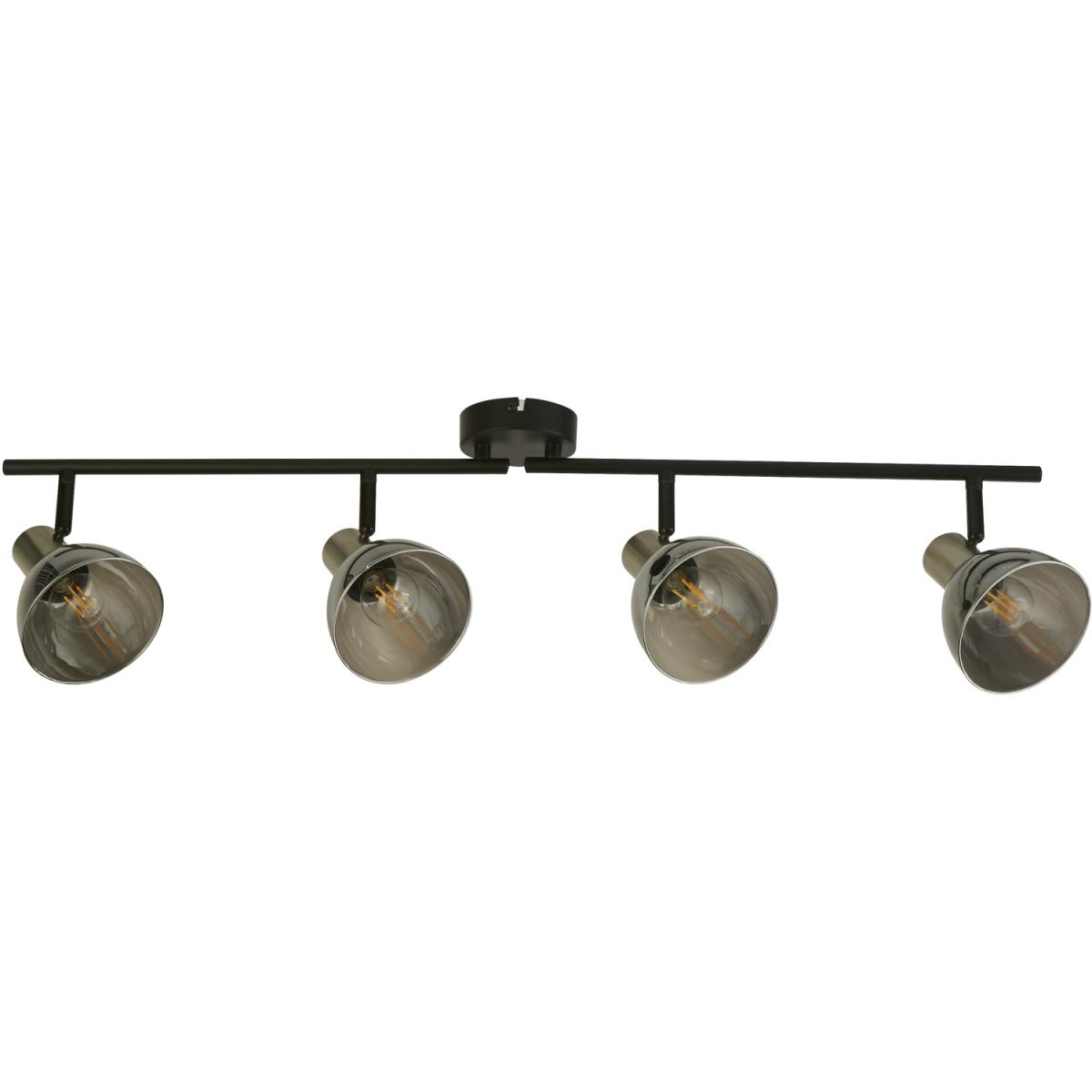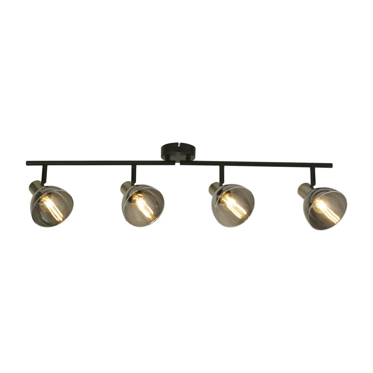 A simple and sophisticated 4 light spotlight bar featuring an on trend matte black backplate. Satin nickel detailing combined with a smoked glass shade create a sleek and modern design for any home. A great addition to any ceiling on its own, or pair with the matching family pieces also available.
