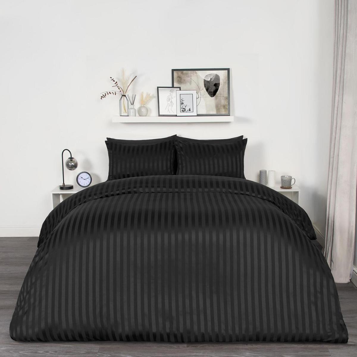 Satin Stripe Duvet Set - Black / Double