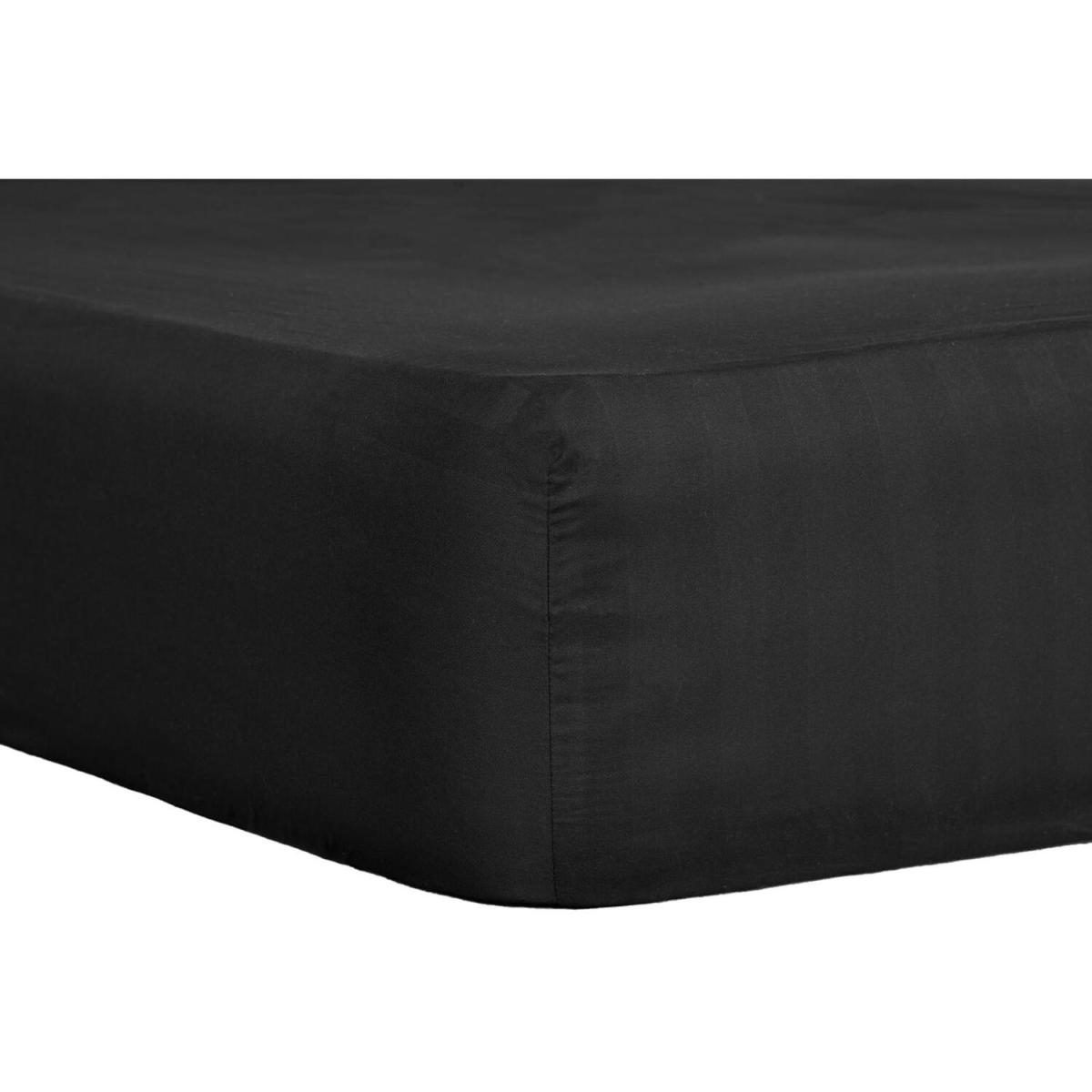 Satin Stripe Fitted Sheet Bed Hotel Luxury Hotel Bedroom - Black / Double