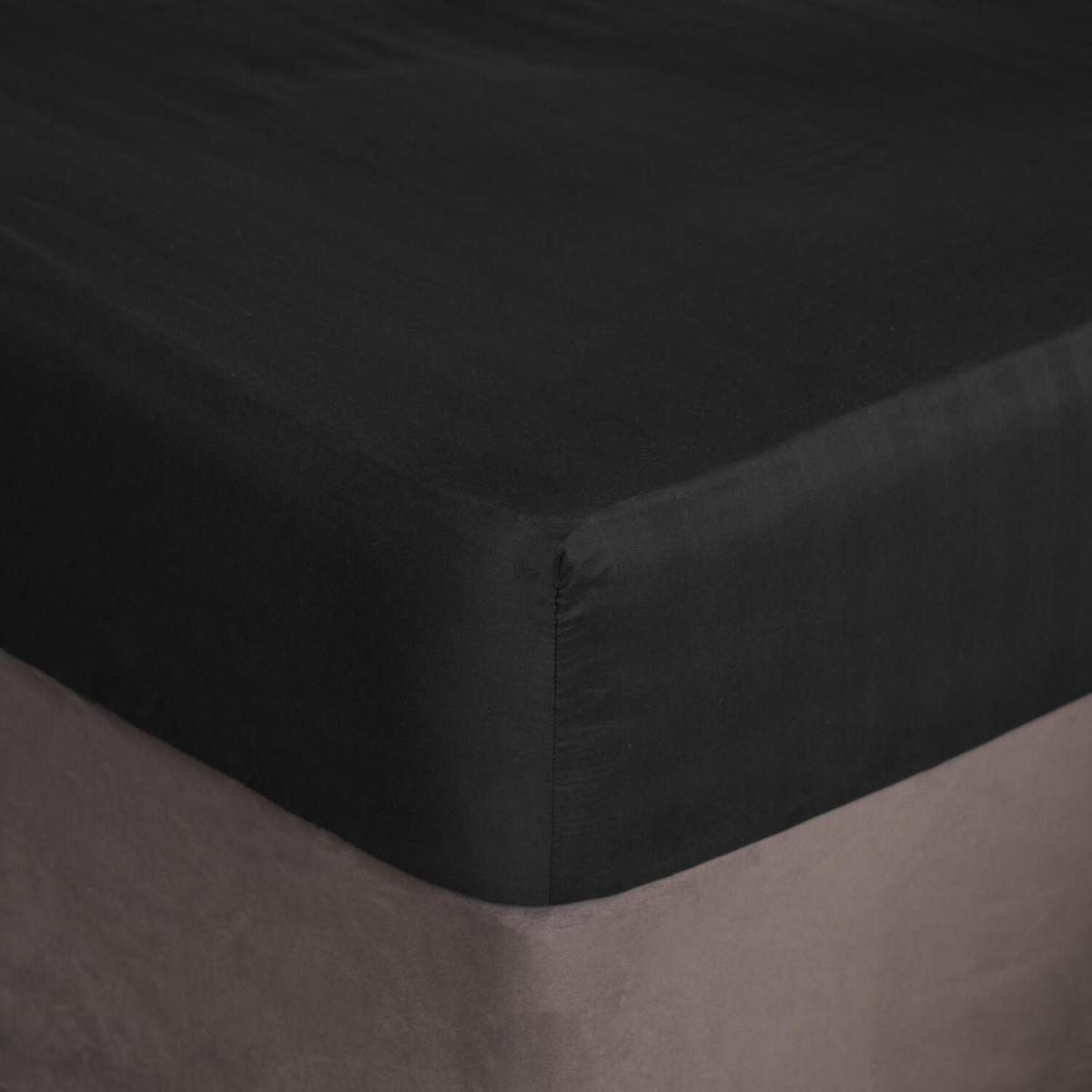 Satin Stripe Fitted Sheet Bed Hotel Luxury Hotel Bedroom - Black / Single