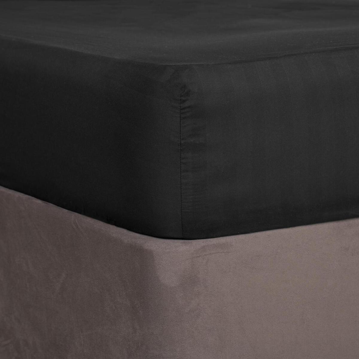 Satin Stripe Fitted Sheet Bed Hotel Luxury Hotel Bedroom - Black / Superking