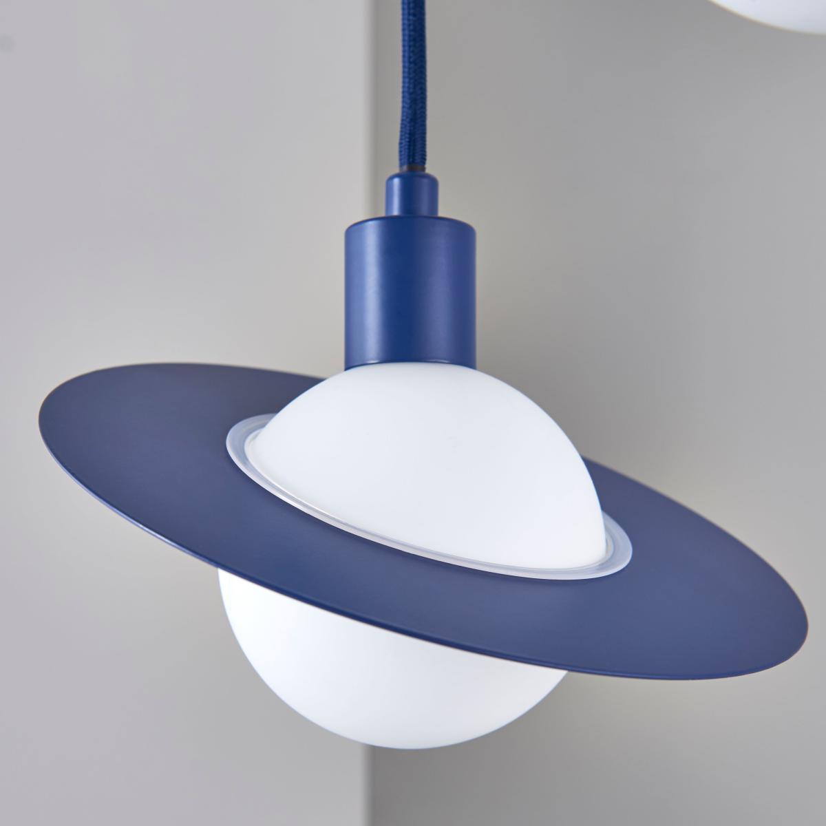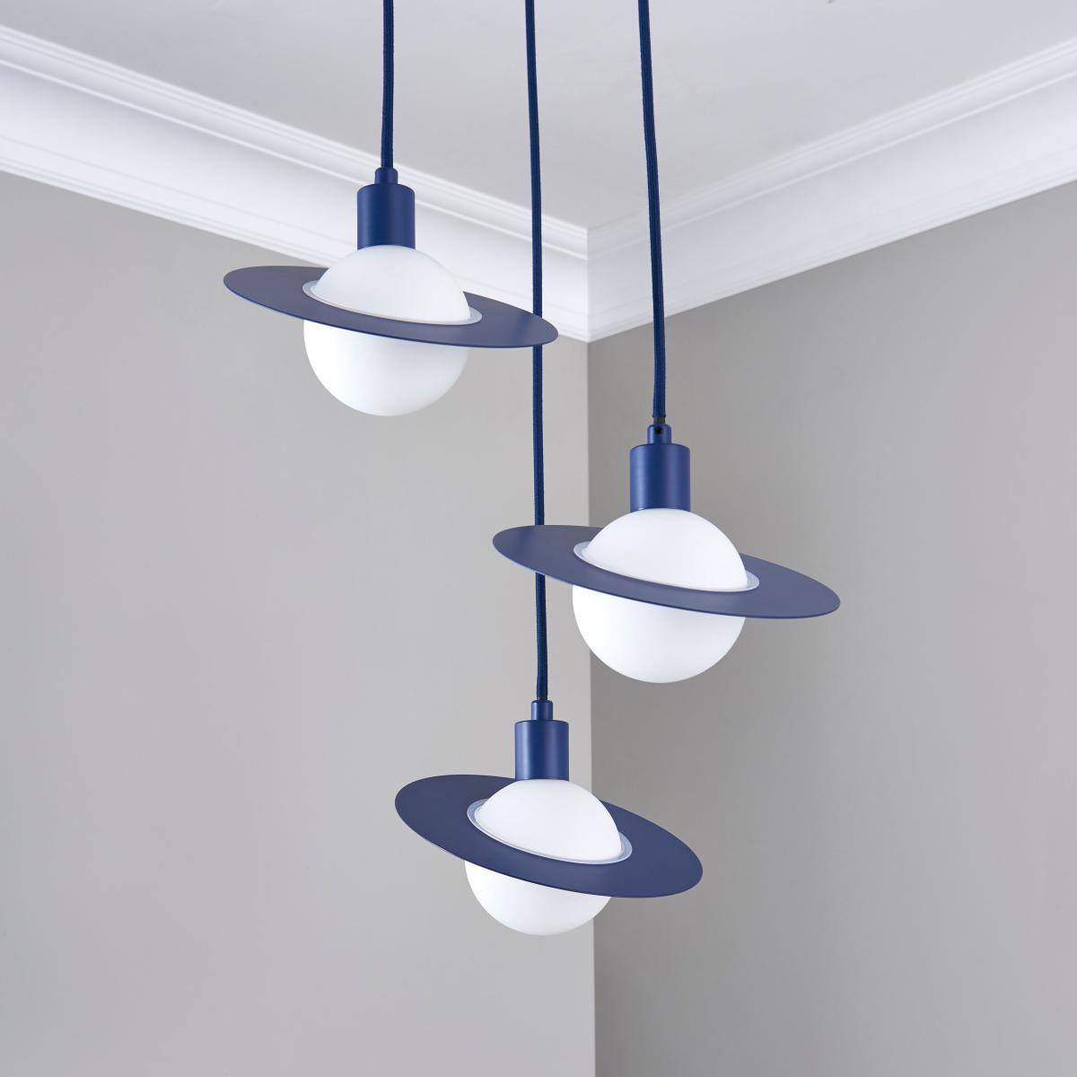 I love the Saturn 3 Light Cluster in blue for its playful yet modern appeal. It works particularly well in contemporary interiors, adding a pop of colour to neutral schemes or complementing bold, vibrant spaces. Its playful design makes it ideal for a kids’ bedroom, a fun dining area, or a creative studio space. Practical styling tips include pairing it with minimalist furnishings to let the light fixture shine, or using matching blue accents elsewhere in the room for a cohesive look. Consider positioning it centrally to maximise impact or above a dining table to create a focal point. Its colour and shape bring a youthful vibe, making it versatile for a range of modern interiors.