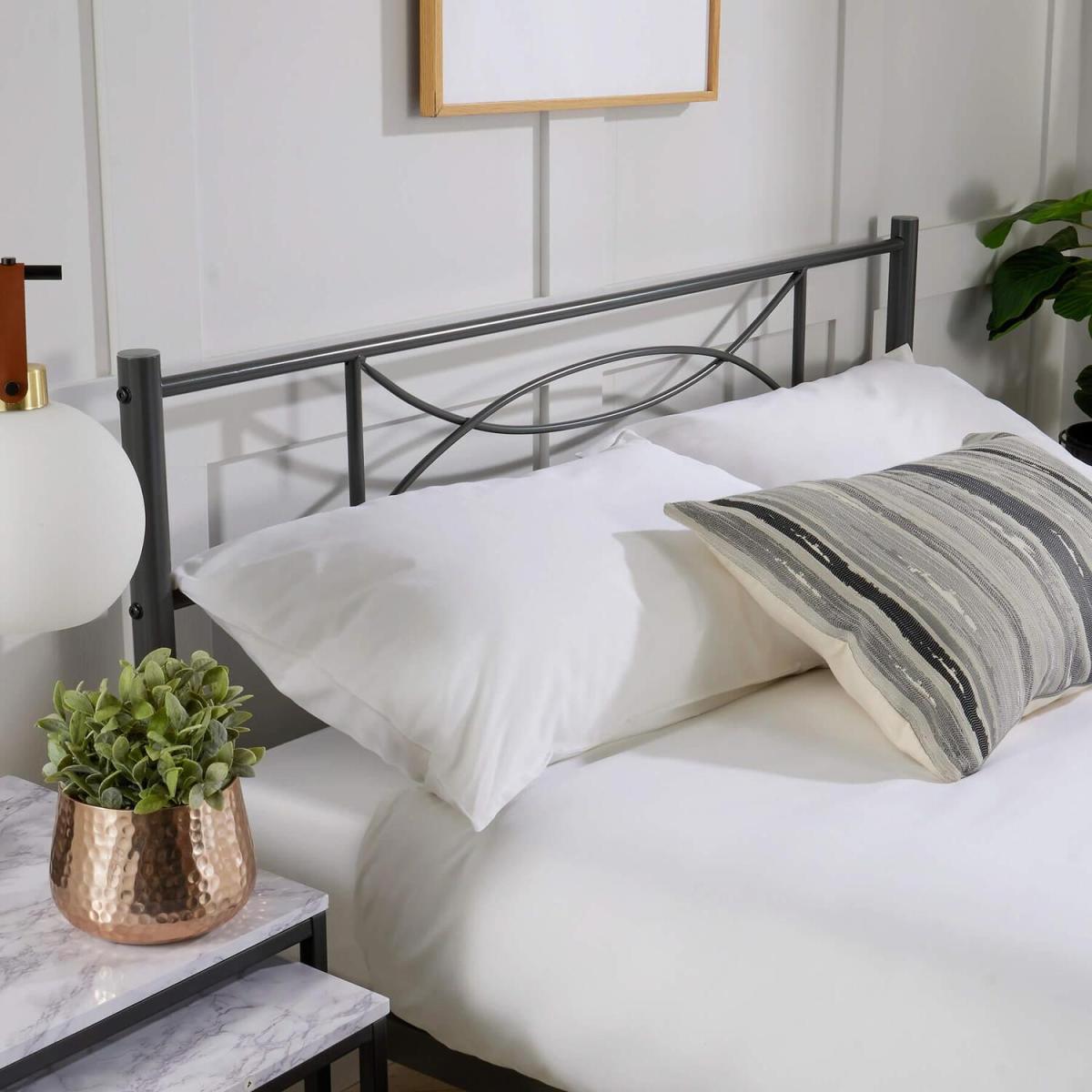 I love the Saturn metal bed frame for its sleek, minimalist design, making it a versatile addition to both modern and contemporary interiors. Its grey finish provides a neutral backdrop that works well with a variety of colour schemes and styles, from cosy Scandi to industrial chic. Practical styling tips include layering with textured bedding and throws for added visual interest, while pairing with muted or bold accent colours can help define the space. It’s a great choice for smaller rooms thanks to its compact size, and the metal frame’s clean lines make it easy to incorporate into a clutter-free, streamlined aesthetic.