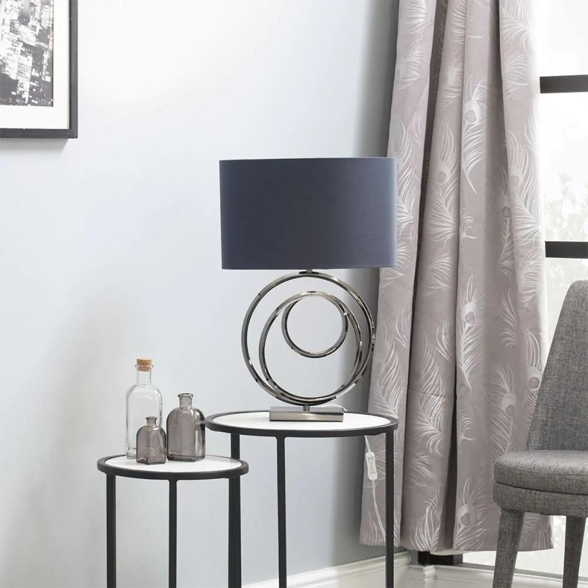 This lamp's modern design with its striking swirl base and dark grey shade makes it a versatile statement piece that works particularly well in contemporary or minimalist interiors. I love how the black nickel finish adds a sleek, sophisticated touch without feeling heavy. It's perfect for side tables or bedside tables, bringing both style and functionality. For styling tips, try pairing it with muted or monochrome décor to let the lamp be a focal point or use it alongside textured fabrics and metallic accents to create a layered, elegant look. Its sculptural form also makes it suitable for stylish office or lounge settings where a contemporary edge is desired.