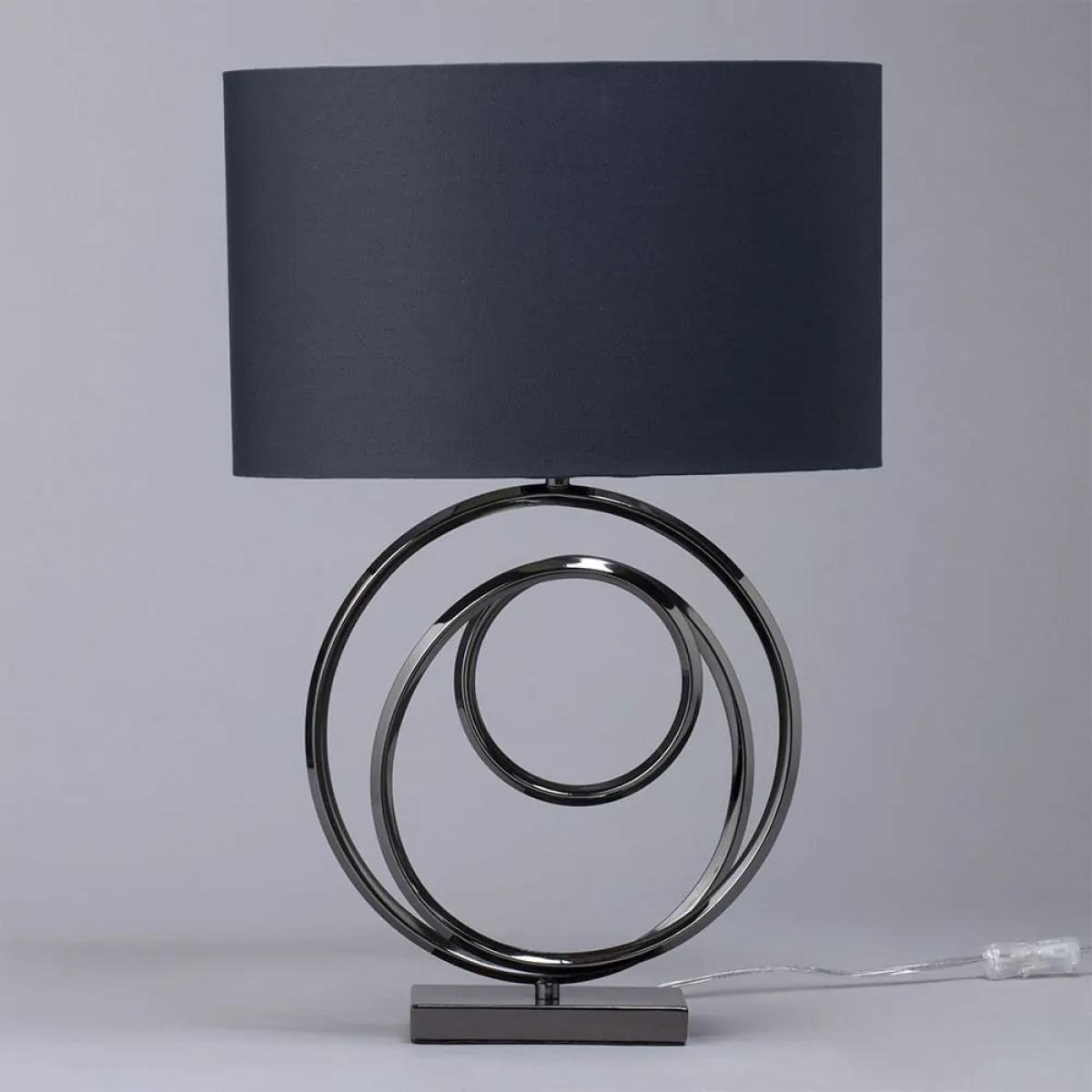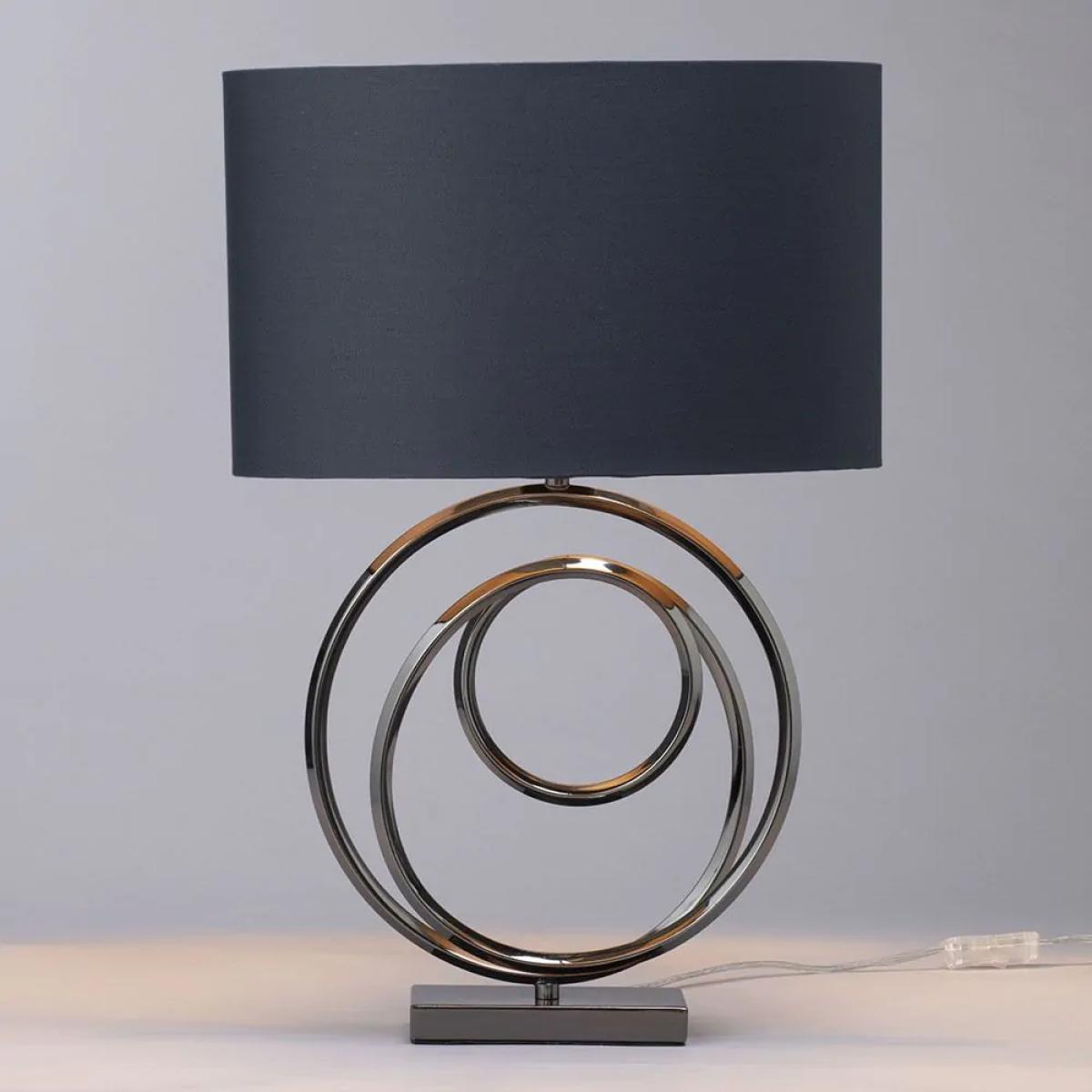 Saturn Swirl Base Table Lamp with Dark Grey Shade, Black Nickel
