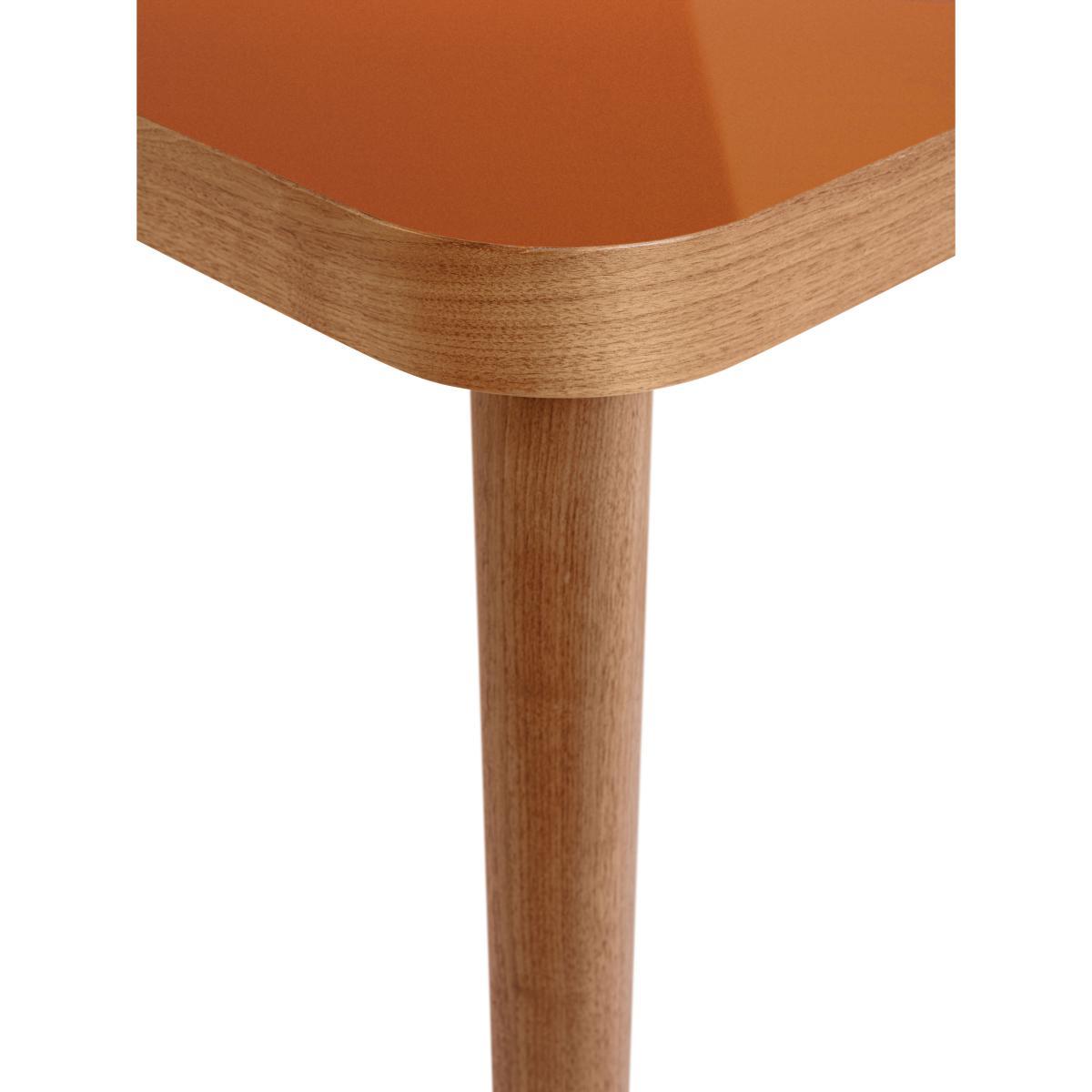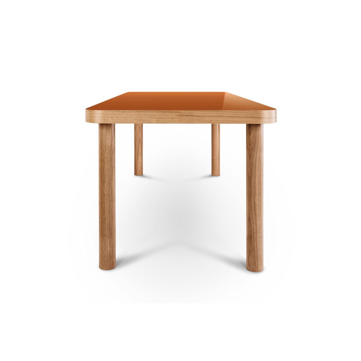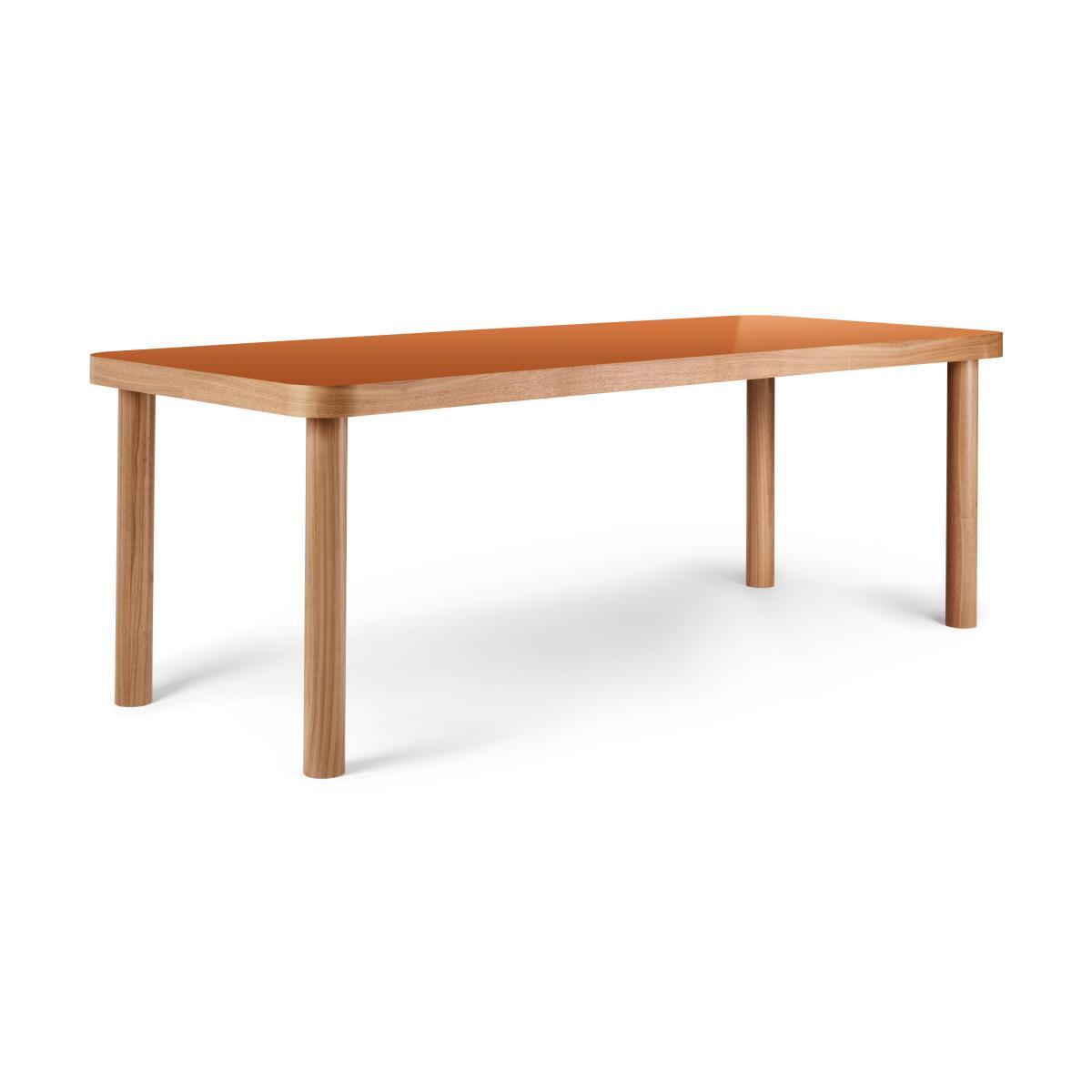 With his touch imbued with both rigour and poetics, Italian designer and architect Fabio Fantolino is in deep stylistic harmoney with the Wiener GTV Design house. Säul (which means column in German) is a large, rectangular table made up of four turned legs in solid walnut, a thick tabletop made using high-shine laminated HPL with walnut plywood edging. The tabletop has an orange sheen which adds a bold and vibrant style, contrasting the noble and classical aspect of the walnut wood. The rounded corners of the tabletop draw inspiration from the traditional curved lines used by the brand. Rich materials, high standards of quality, exceptional finishes and an original form, all wonderfully characteristic of the Wiener GTV Design spirit. Drawing on the tradition and way of thinking of Michael Thonet, Wiener GTV Design develops products rooted in an innovative, meticulous design process. A team of designers, creators and artisans produces unique products of exceptional craftsmanship. Product sustainability is at the centre of the development process.