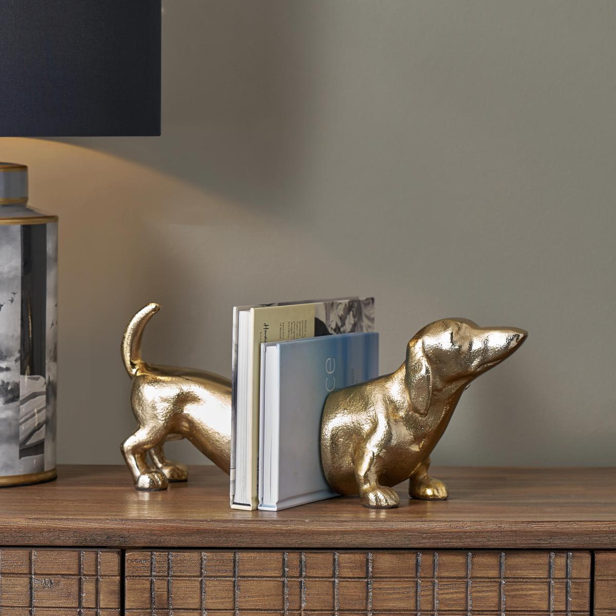 I love these little dog bookends for their playful yet sophisticated twist on functional decor. The gold finish instantly adds a touch of glamour, making them versatile for a variety of interiors-be it modern, eclectic, or even traditional schemes that embrace quirky accents. They work particularly well paired with colourful or patterned shelves to create a focal point, or used as a fun counterpoint on a minimalist sideboard. Practical styling tips include grouping them with books of varying heights or stacking books unevenly for a contemporary feel. They’re a great way to inject personality into a space while keeping your books organised and easily accessible.