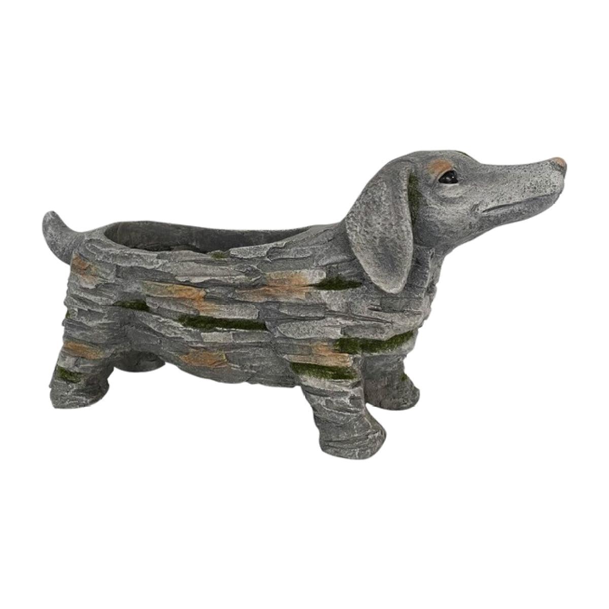 The perfect gift for any dog lover, this adorable Stone Effect Sausage Dog Planter is sure to brighten your home. The planter has a wonderful stone-effect design and plenty of space for you to plant your favourite houseplants or flowers. Great for decorating your conservatory, patio, or even your living room, you'll love this charming sausage dog.