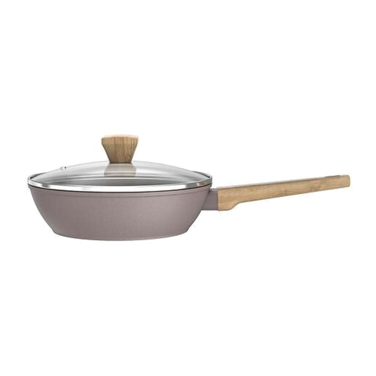 Product description:The ceramic coating is healthier to cook with because it requires little or no oil and is still adhesive. It is also appreciated for its ability to distribute heat evenly and is easier to live with than classic frying pans. The bakelite handle is a very popular thermosetting plastic material. It is appreciated for its robustness, its resistance and its comfortable grip. This type of handle is designed to avoid heat and make handling safer and more pleasant, even when cooking at high temperatures. Product details: • 28 cm sauté pan with stainless steel Basket and Glass lid • Forged aluminium • Ceramic coating • Wood-effect bakelite handle • Stainless steel glass lid • Steam basket evaporator • All burners including induction