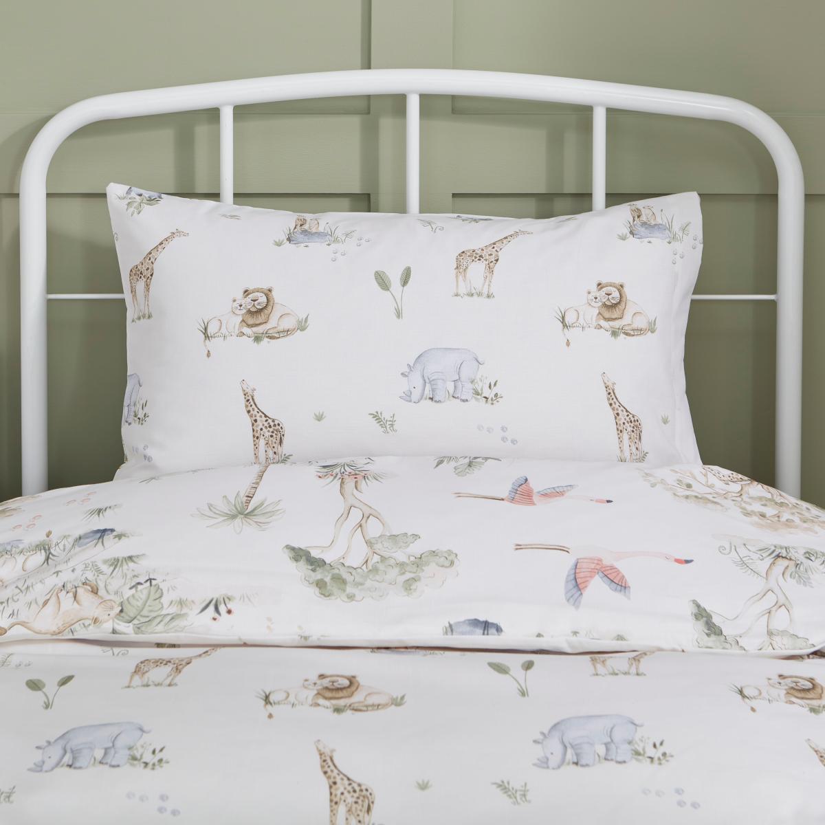 * Super soft and breathable 100% Cotton Jersey * Adorable animals design * Machine Washable * Corresponding items available Transform your child’s room into a nature-inspired retreat with the Savannah Cot Bed Duvet Set. Made from 100% soft, breathable cotton jersey, this cosy set features an adorable animal design that captures the charm of the savannah. The gentle, neutral tones blend seamlessly with a variety of bedroom décors, making it a versatile addition to any nursery or kids' room. Machine washable for easy care, this duvet set retains its softness and delightful design wash after wash. With matching items available, you can create a beautifully coordinated and calming sleep space where your little one can dream of wild adventures. This collection is verified by OEKO-TEX® and independently tested for harmful substances as well as manufactured using sustainable processes under socially responsible working conditions. MADE IN GREEN by OEKO-TEX® is a unique product label to trace the countries and production facilities - search the product label for more information.