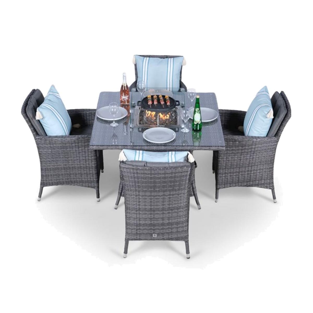 Savannah Fire Pit 4 Seater Square Rattan Dining Set - Grey