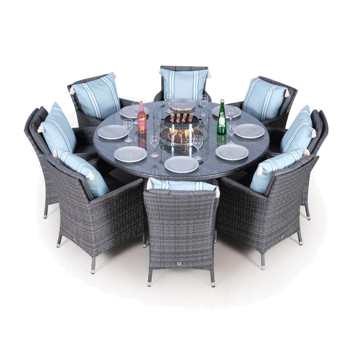 Savannah Fire Pit 8 Seater Round Rattan Dining Set - Grey