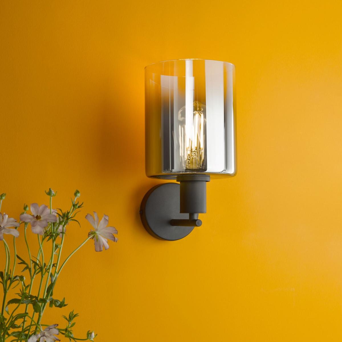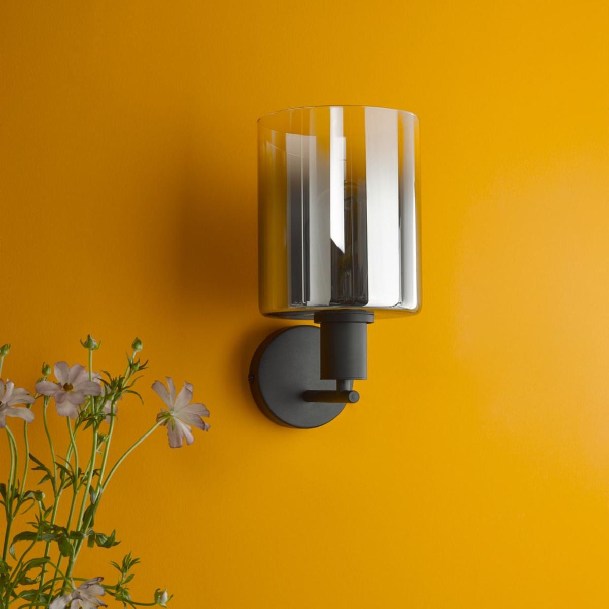 Savannah 1-light wall light, featuring a matte black finish with an ombre smoked glass cylindrical shade. The Savannah wall light is a striking fusion of contemporary elegance and moody sophistication. Featuring a matte black finish, this sleek fixture is designed to add a modern, understated touch to any interior. The smoked glass shade gradually transitions from deep smoky tones to a lighter, translucent hue, creating a soft, ambient glow that enhances the atmosphere of your space. Perfect for hallways, bedrooms or living areas, this wall light provides both functional illumination and decorative appeal. The combination of dark metalwork and the gradient glass shade makes it a versatile choice for industrial, modern or luxe interiors. Whether installed as a standalone feature or as part of a set, the Savannah wall light adds a chic, contemporary edge to any room. Savannah 1-light wall light, featuring a matte black finish with an ombre smoked glass cylindrical shade. The Savannah wall light is a striking fusion of contemporary elegance and moody sophistication. Featuring a matte black finish, this sleek fixture is designed to add a modern, understated touch to any interior. The smoked glass shade gradually transitions from deep smoky tones to a lighter, translucent hue, creating a soft, ambient glow that enhances the atmosphere of your space. Perfect for hallways, bedrooms or living areas, this wall light provides both functional illumination and decorative appeal. The combination of dark metalwork and the gradient glass shade makes it a versatile choice for industrial, modern or luxe interiors. Whether installed as a standalone feature or as part of a set, the Savannah wall light adds a chic, contemporary edge to any room.
