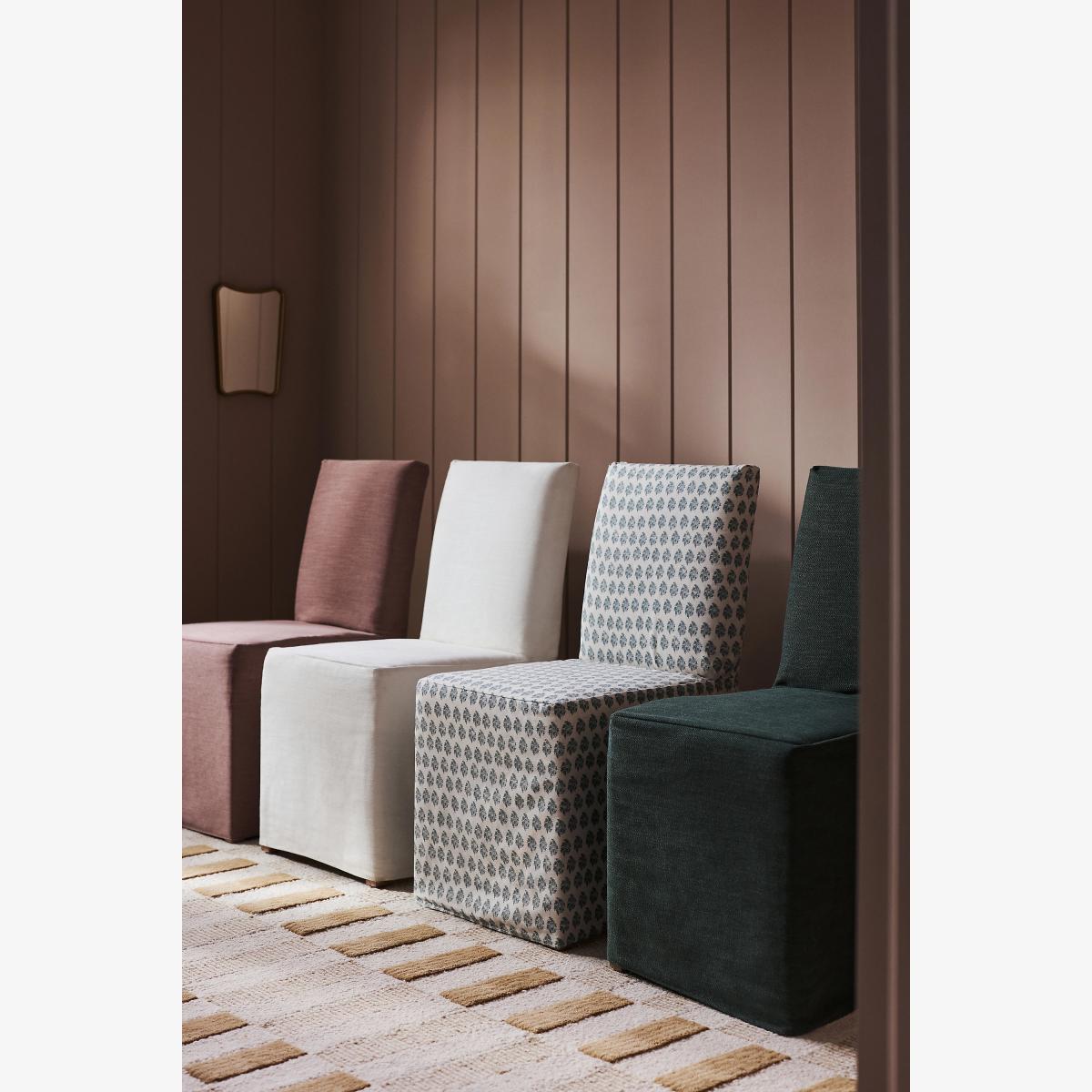 A classic rectangular silhouette with a solid red oak frame draped with a removable performance slipcover, this dining chair was crafted to accommodate guests for lingering meals at any time of day. * Performance Piece-Dyed Weave upholstery: 80% polyester, 20% viscose * Cushion content:Foam & fiber * Sinuous spring seat construction * FSC-certified solid red oak wood * Slipcover is removable * Professionally clean * This piece is intended for indoor use * No assembly required * Imported