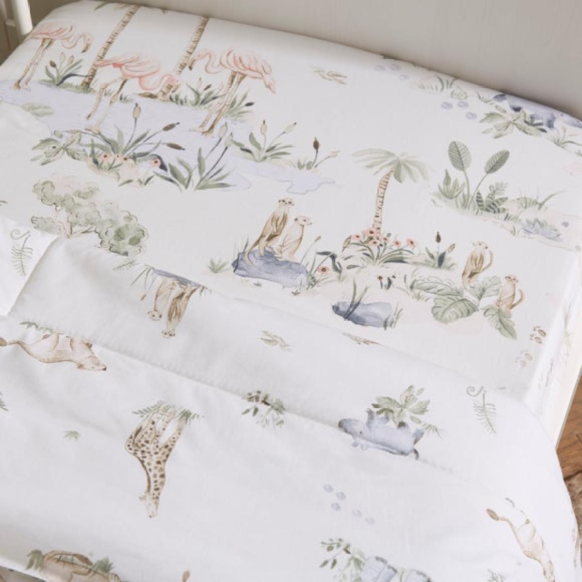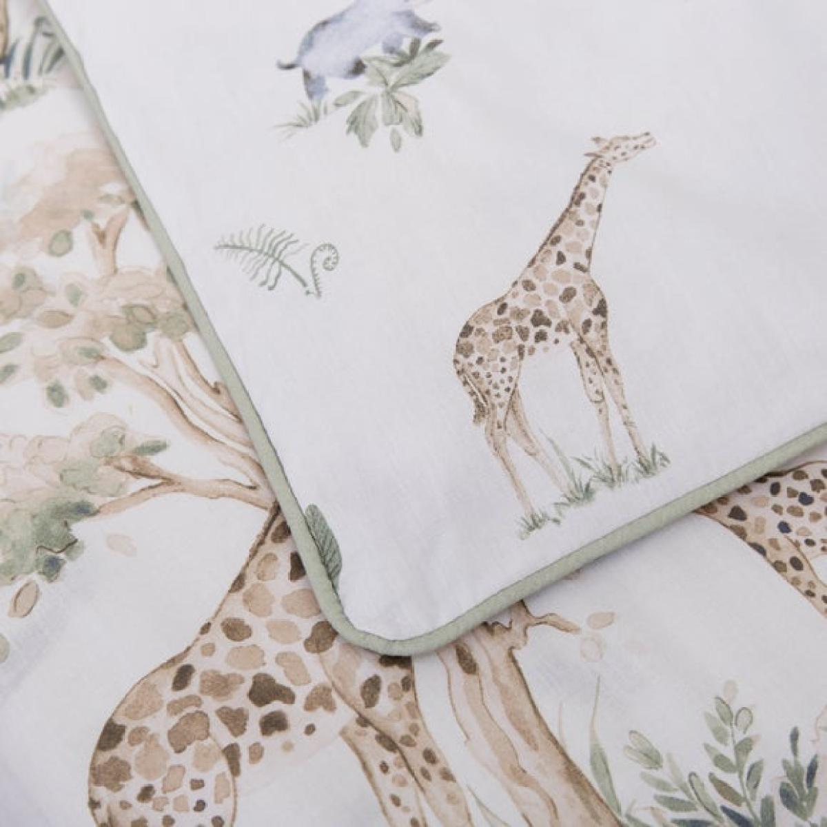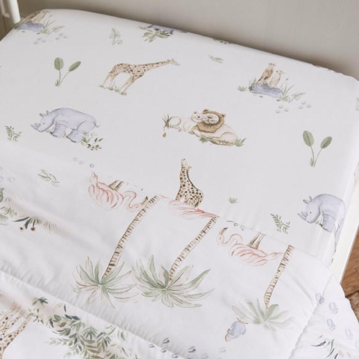 * Super soft and breathable 100% Cotton Jersey * Adorable animals design * Machine Washable * Corresponding items available Wrap your little one in warmth and comfort with the Savannah 4 Tog Cot Bed Coverless Duvet. Crafted from 100% soft, breathable cotton jersey, this lightweight yet cosy quilt is perfect for year-round comfort. The adorable animal design brings a playful touch to any nursery, while the neutral, earthy tones create a soothing and calming environment. Designed for convenience, it’s machine washable for easy maintenance while staying soft and durable. Whether paired with matching items or as a stand-alone piece, this quilt is the perfect way to add a touch of natural beauty to your child’s bedroom.