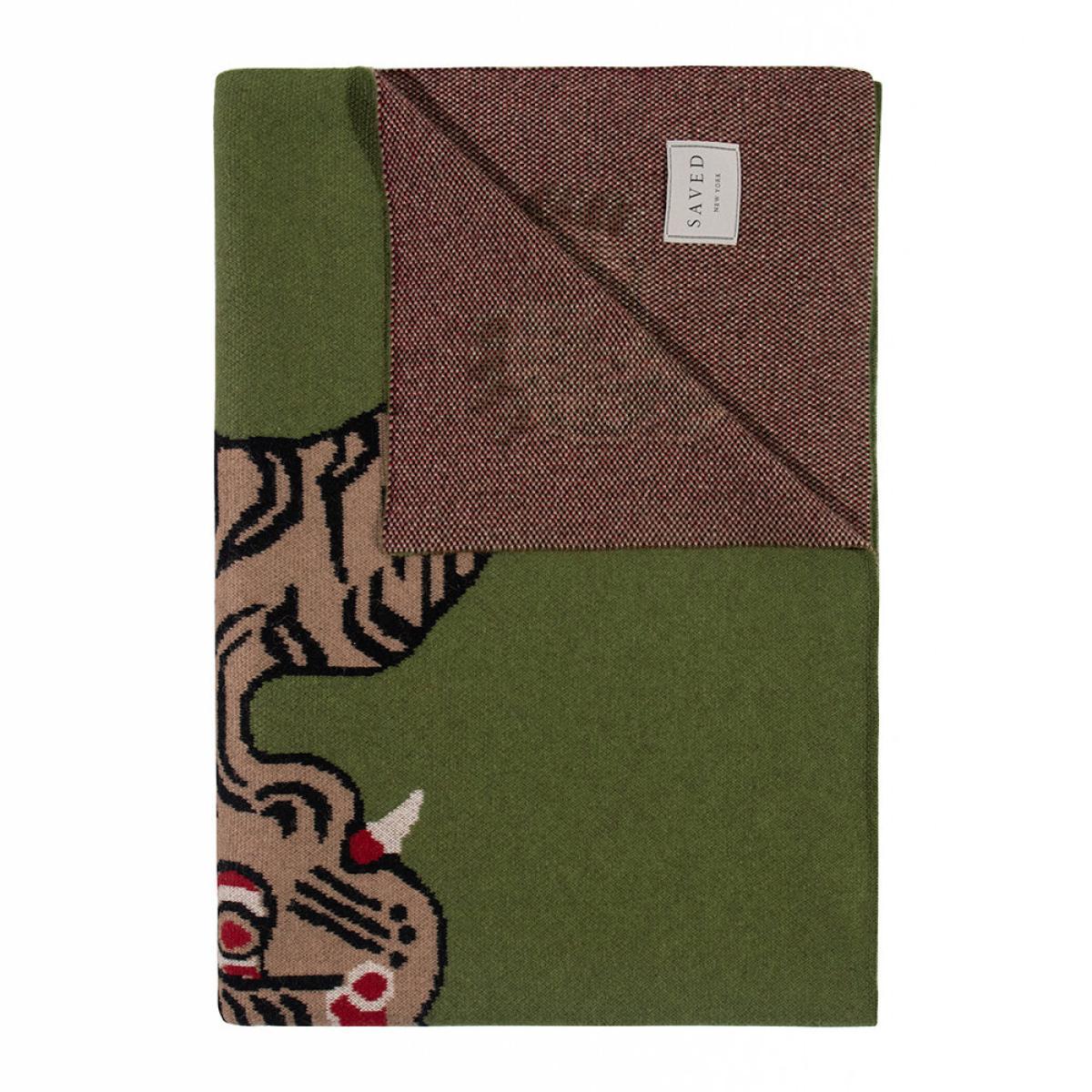 Walk on the wild side with this luxurious throw from Saved New York. Made in Mongolia from sustainably sourced cashmere, it is adorned with a beautifully unique tiger design and is available in a choice of two colours.