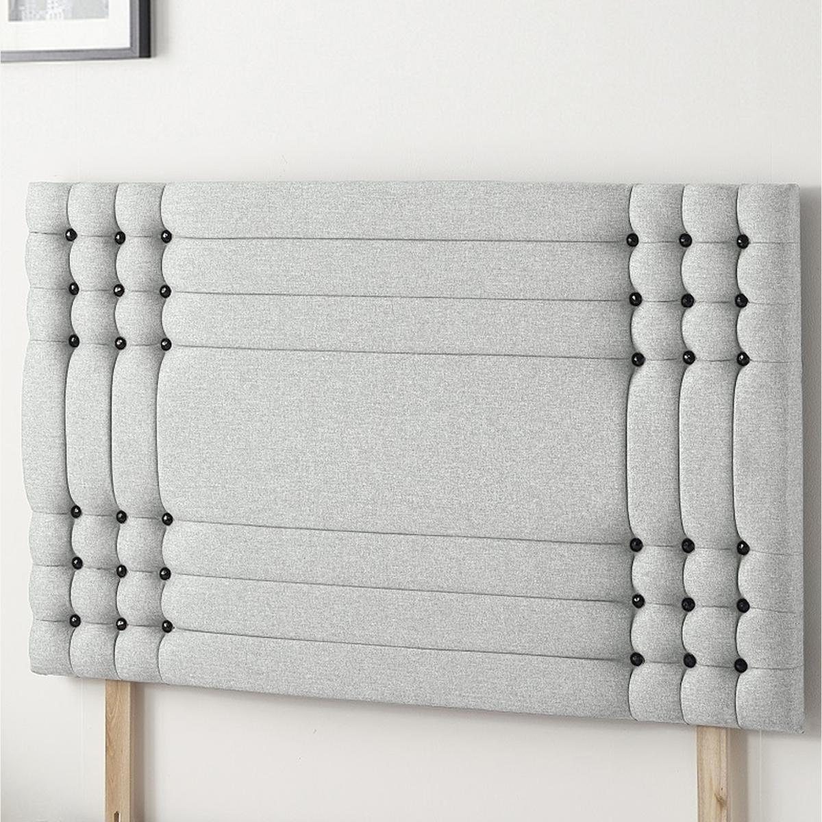 The Saville Linen Fabric 32" Headboard is the definition of refined luxury and contemporary craftsmanship. Upholstered in premium Linen Fabric, it features structured panels with black diamante tufted buttons, creating a focal point while offering comfort when sitting up in bed. The front panel is 32" in height, offering visdual grandeur, great for sitting up in bed too if positioned against a wall. Expertly handcrafted in the UK, the Saville combines durability with elegance, perfectly complementing both modern and classic interiors. Designed to pair seamlessly with all standard UK divan bases.