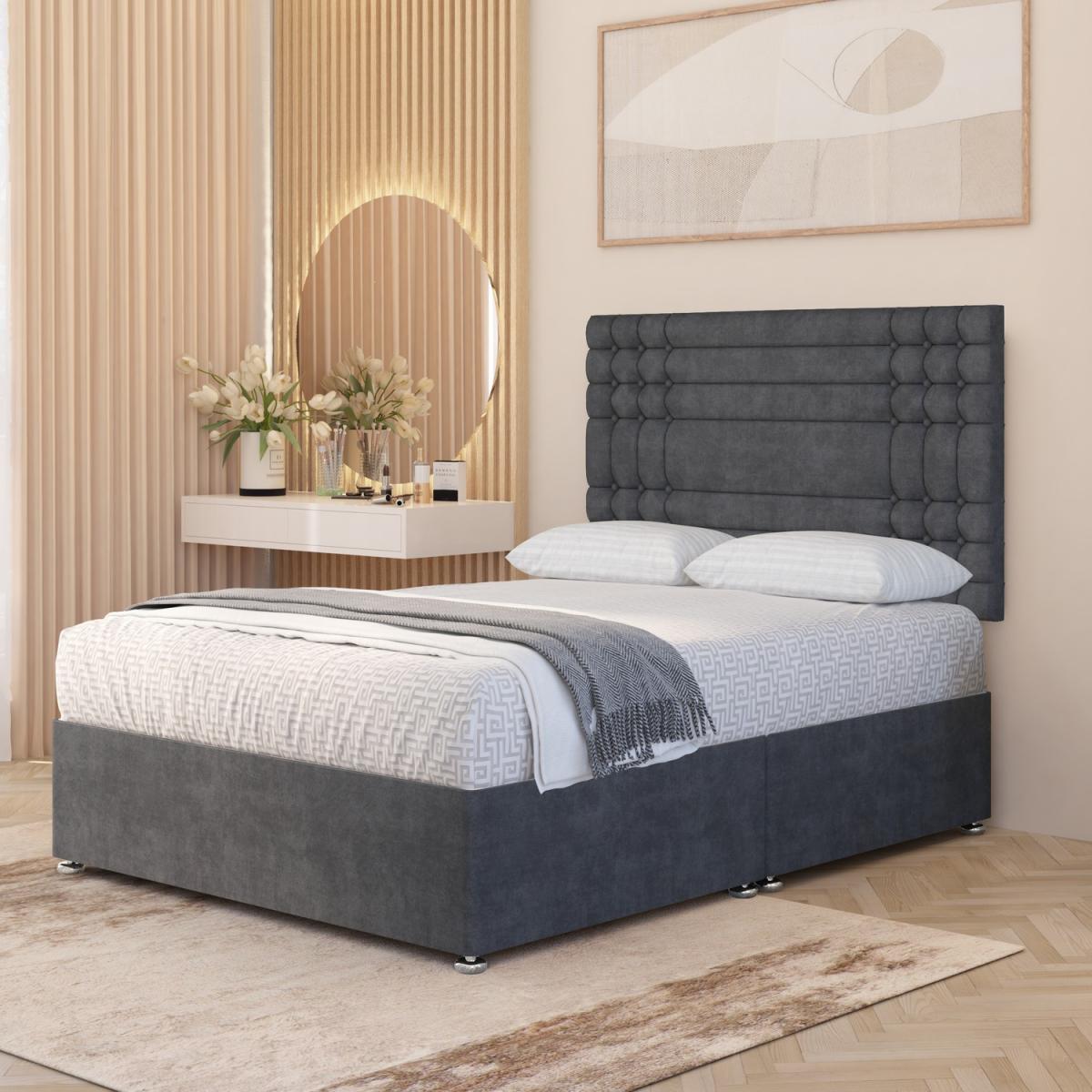 The Flexby Plush Velvet Divan Bed Set with Upholstered Headboard combines timeless design with superior comfort. Its solid platform top divan base ensures long-lasting durability and stable mattress support. Upholstered in sumptuous plush velvet, the set includes a tall 32 vertical panel headboard for an elegant, refined finish. The 28cm Hybrid Midnight Orthopaedic Mattress combines 1000 pocket springs with layers of luxury foams and an eco pad, providing pressure relief, balanced support, and temperature regulation. Expertly handcrafted in the UK and available in all standard sizes. Proudly manufactured in the UK. Available in all standard UK Bed sizes.