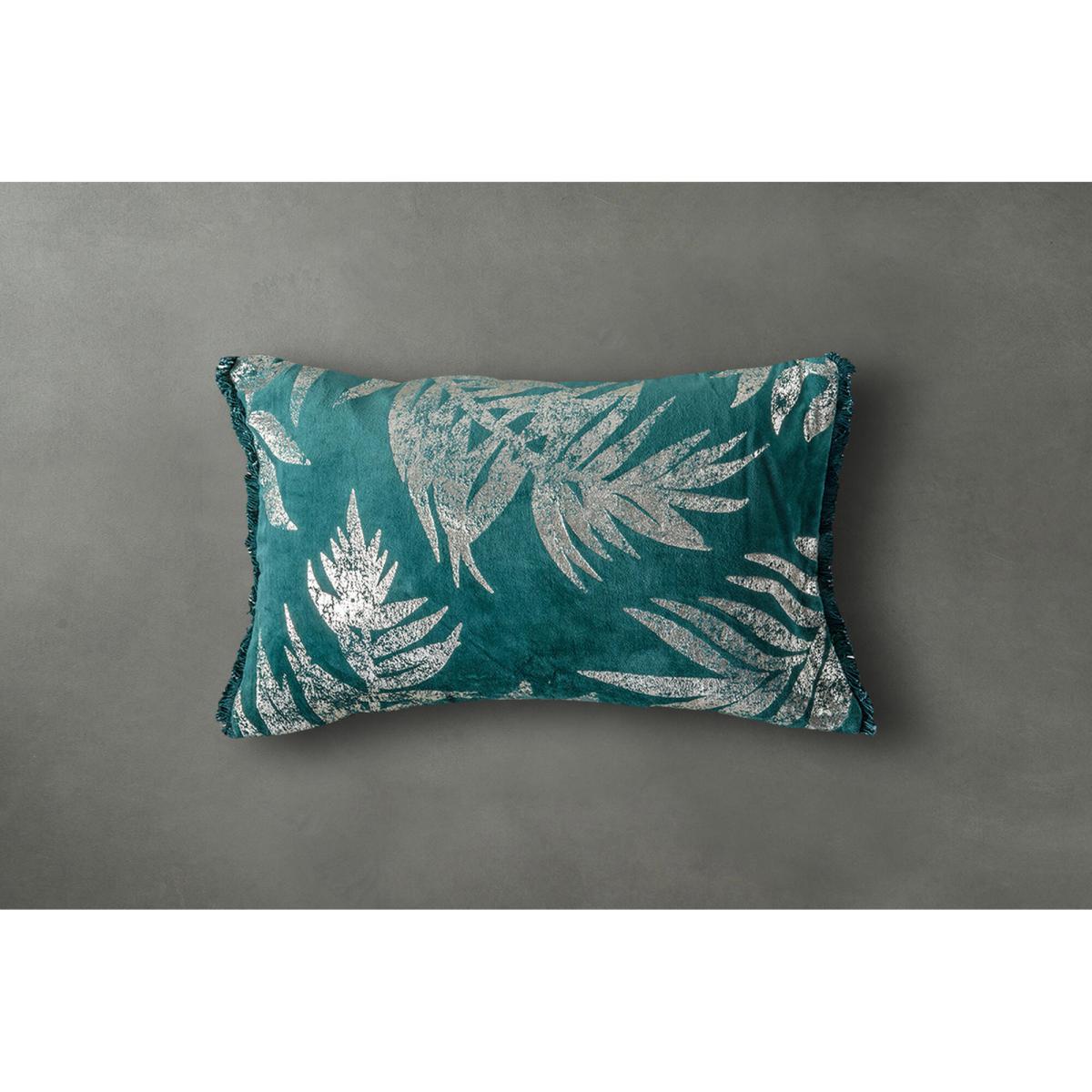 Saville Teal Velvet Leaves Cushion