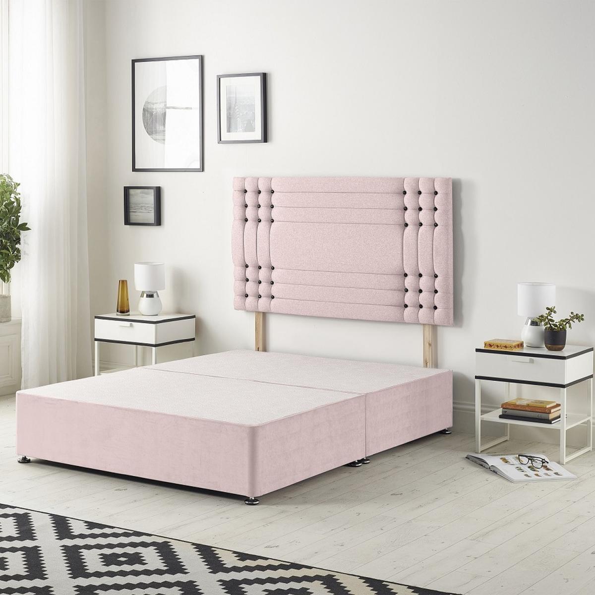 The Saville Plush Velvet Divan Bed Base with 32 Upholstered Headboard combines timeless luxury with everyday durability. Its solid platform top base provides a firm, stable foundation for your mattress, delivering superior support compared to slatted frames. Expertly crafted in the UK from quality timber and finished in plush velvet fabric, it brings refined elegance to any bedroom. The 32 upholstered headboard features tufted panels with black diamante buttons and structured panels, creating a glamorous focal point while offering comfort when sitting up in bed. Taller than standard 24 designs, it makes a grand statement. The base measures 34.5cm in height with gliders attached (30.5cm without) and is available in all standard. Headboard face panel is 32"86cm, height adjustable by struts.