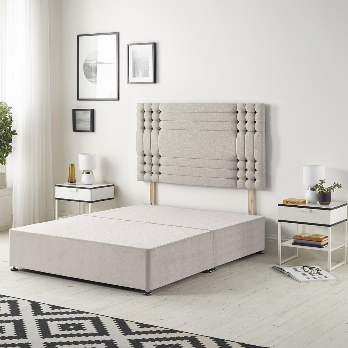The Saville Plush Velvet Divan Bed Base with 32 Upholstered Headboard combines timeless luxury with everyday durability. Its solid platform top base provides a firm, stable foundation for your mattress, delivering superior support compared to slatted frames. Expertly crafted in the UK from quality timber and finished in plush velvet fabric, it brings refined elegance to any bedroom. The 32 upholstered headboard features tufted panels with black diamante buttons and structured panels, creating a glamorous focal point while offering comfort when sitting up in bed. Taller than standard 24 designs, it makes a grand statement. The base measures 34.5cm in height with gliders attached (30.5cm without) and is available in all standard. Headboard face panel is 32"86cm, height adjustable by struts.