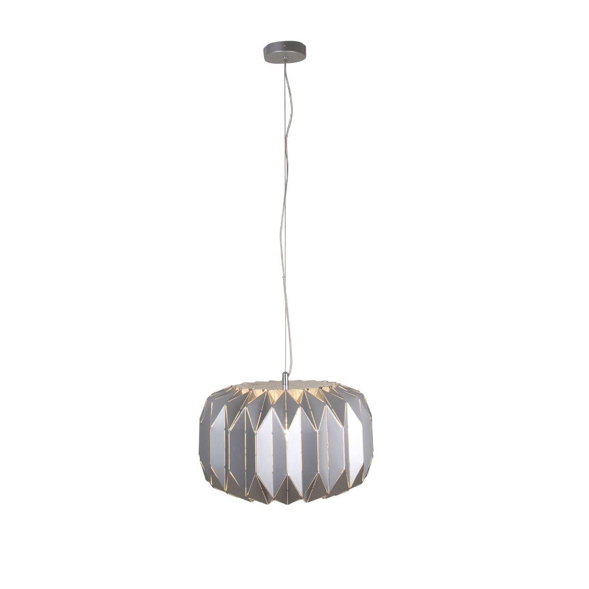 Gorgeous 1 light pendant with geometric silver shade. This origami style geometric pendant fitting is finished in smooth metallic grey. Its clean lines and cut-out detail create a striking feature light. Perfect for adding character to any room, the grey shade fits cleanly into contemporary decor. Style this light with one of our vast selection of LED E27 light bulbs.